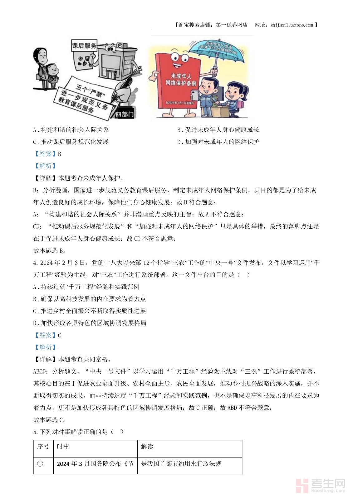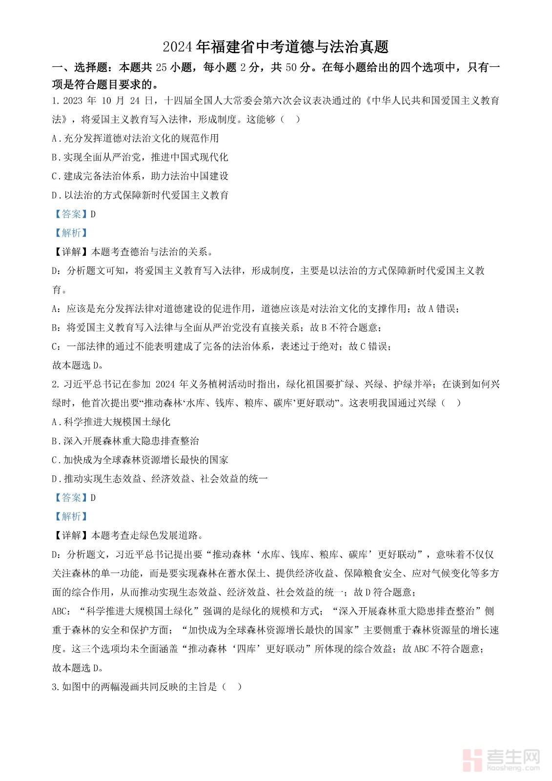 2024年中考道德与法治真题