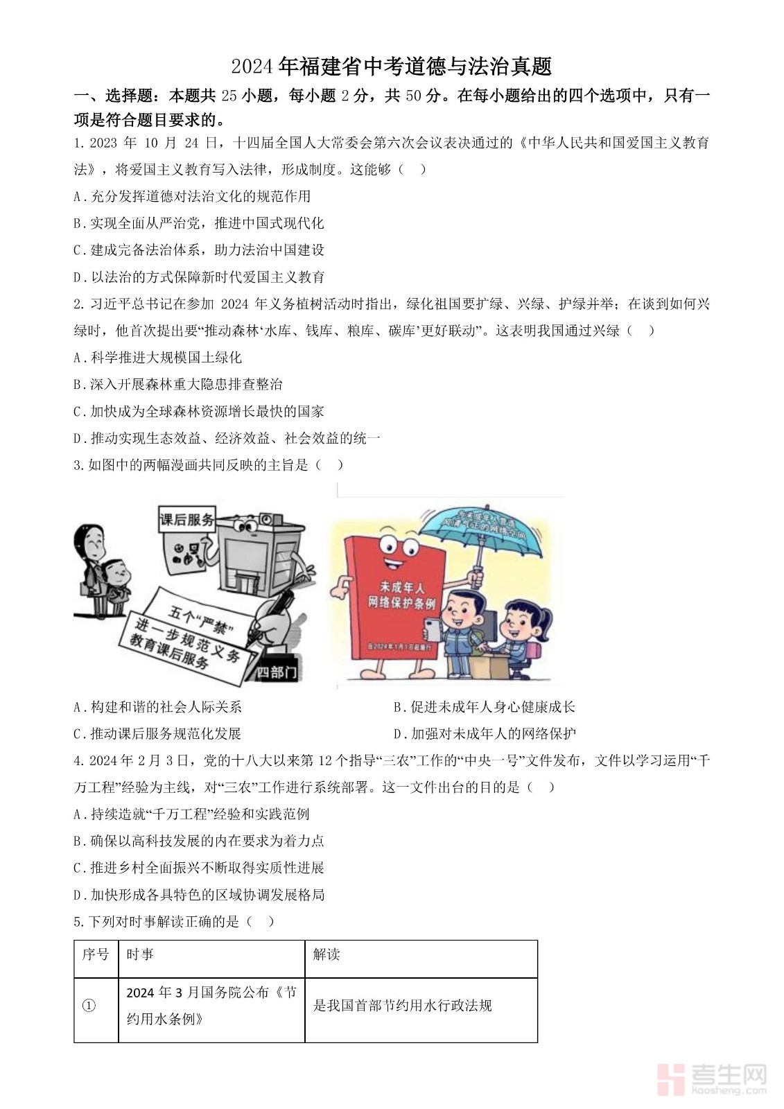 2024年宁夏回族自治区中考道德与法治真题(原卷版)