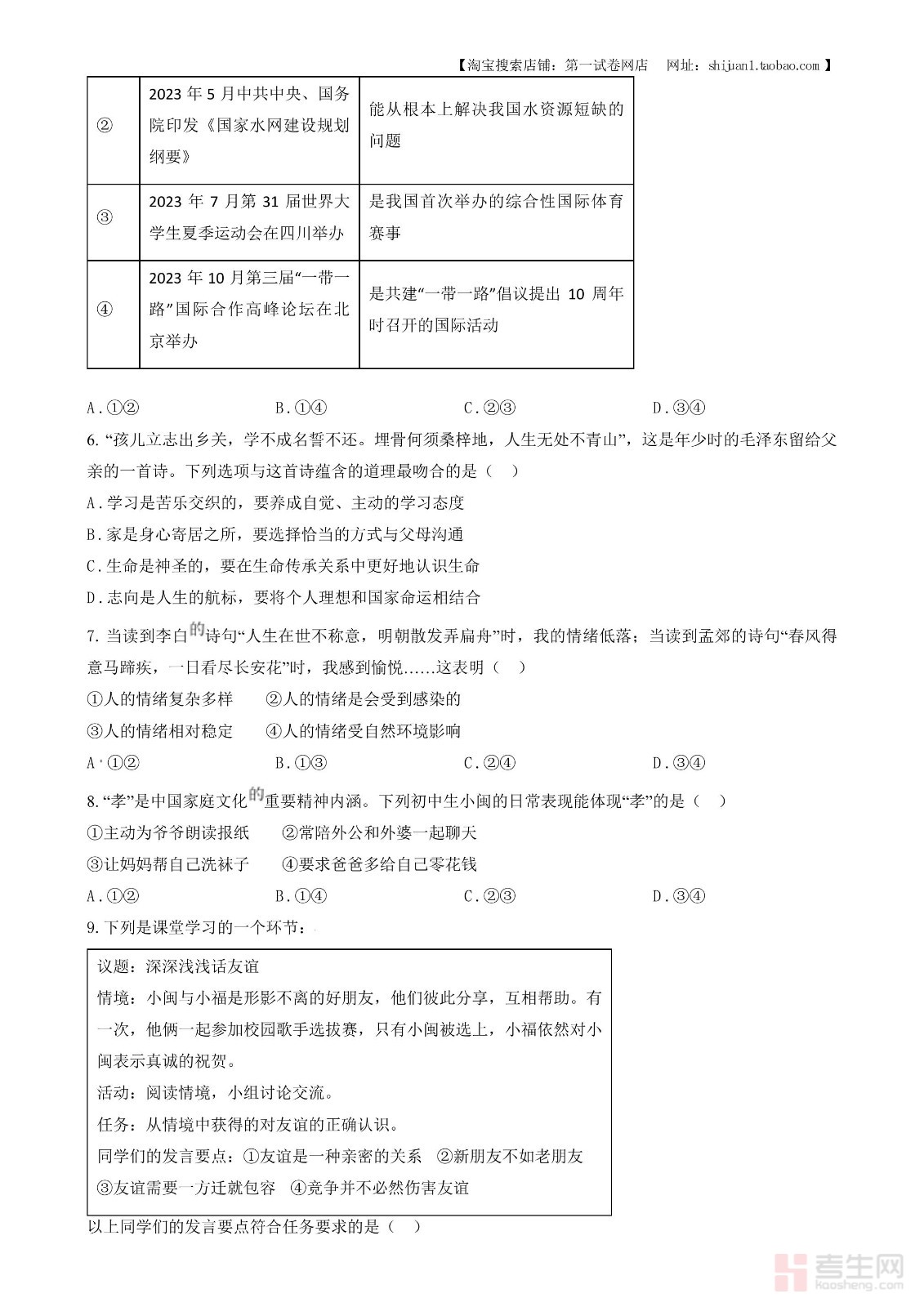 2024年重庆市中考道德与法治真题(B卷)(原卷版)