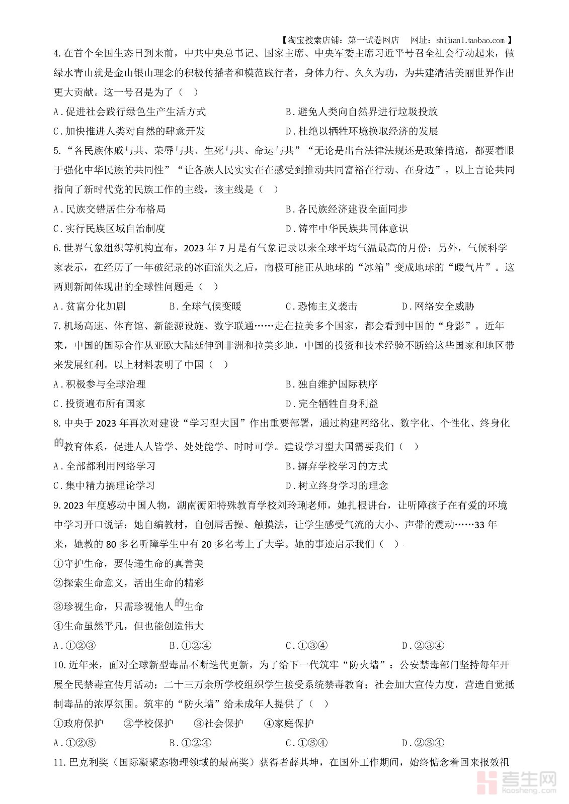 2024年贵州省黔南州中考道德与法治真题(原卷版)