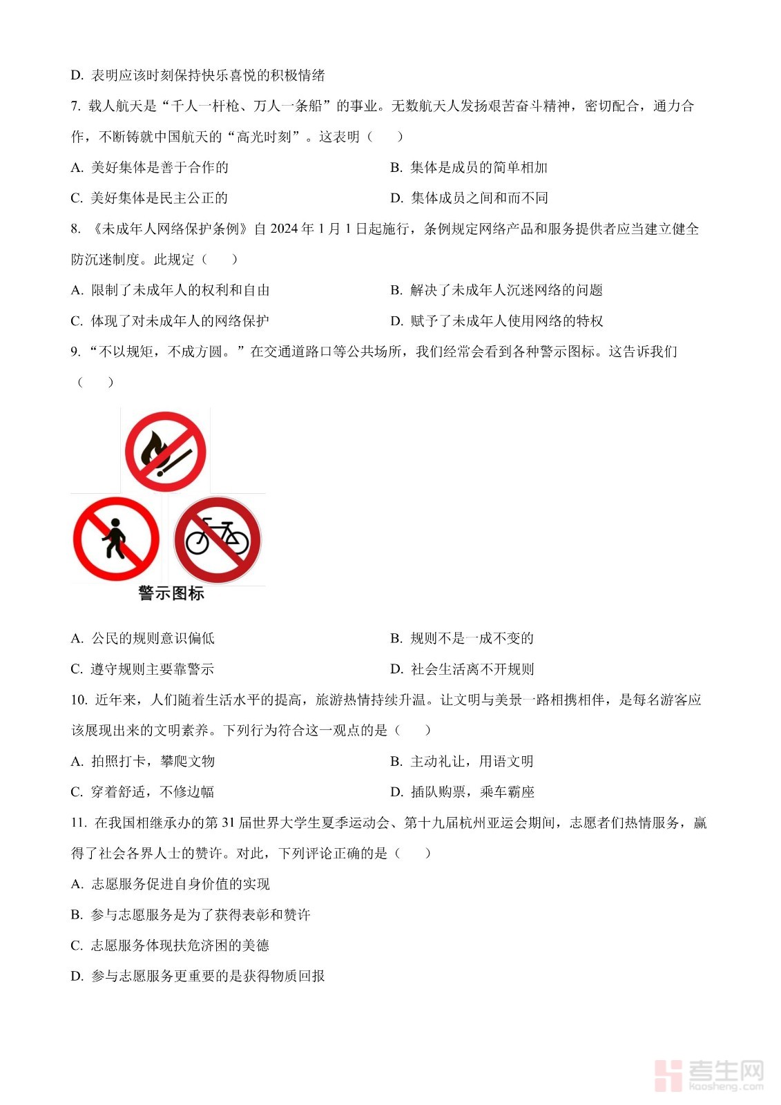 2024年黑龙江省齐齐哈尔市中考道德与法治真题(原卷版)