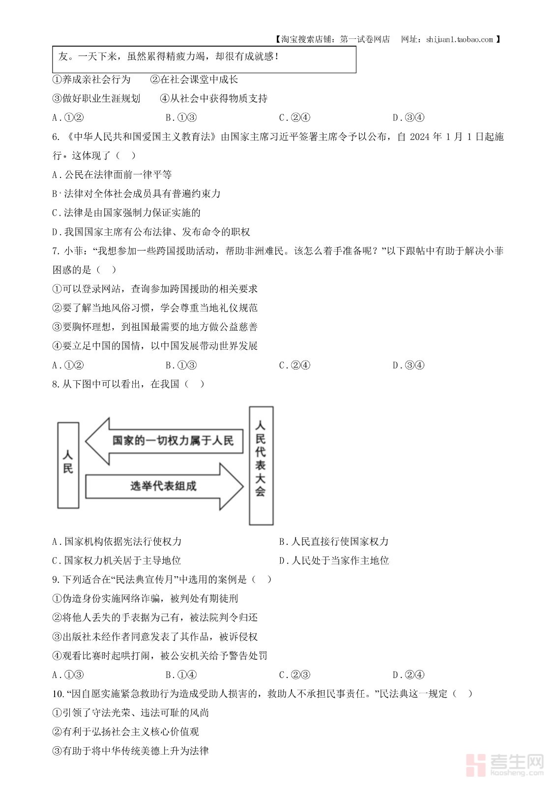 2024年重庆市中考道德与法治真题(B卷)(原卷版)
