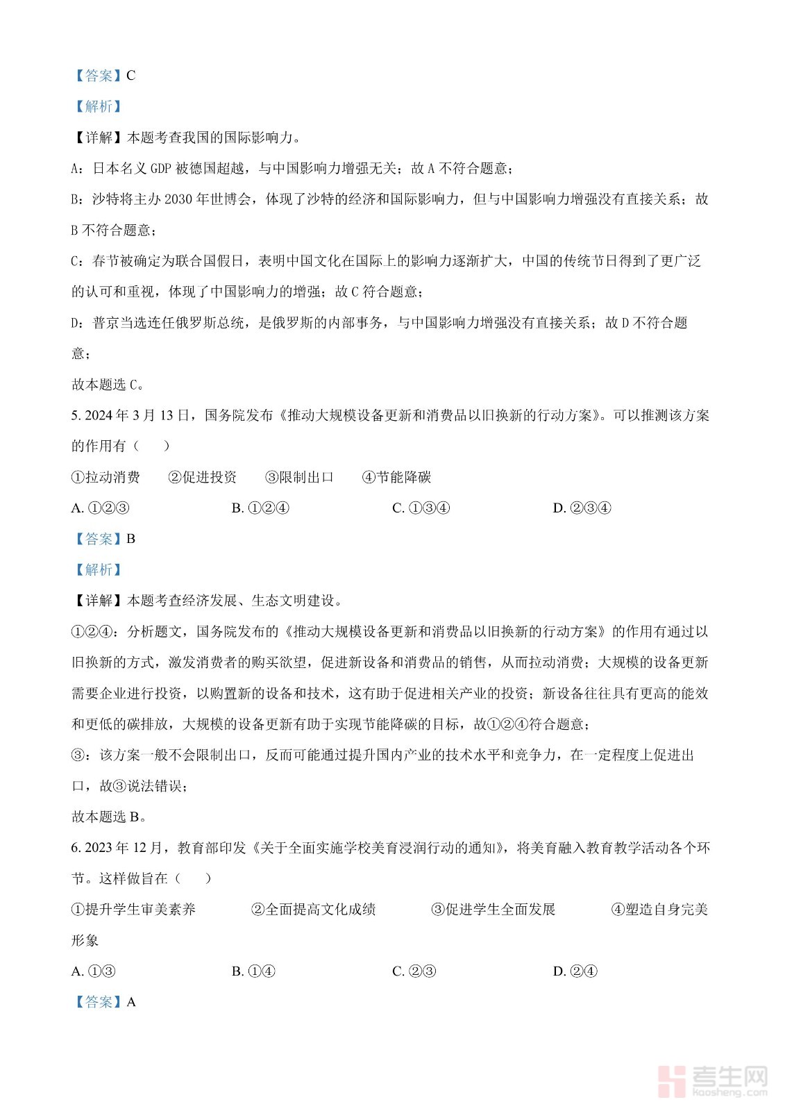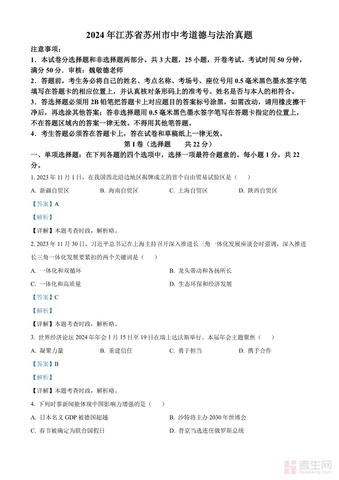 2024年江苏省苏州市中考道德与法治真题(解析版)