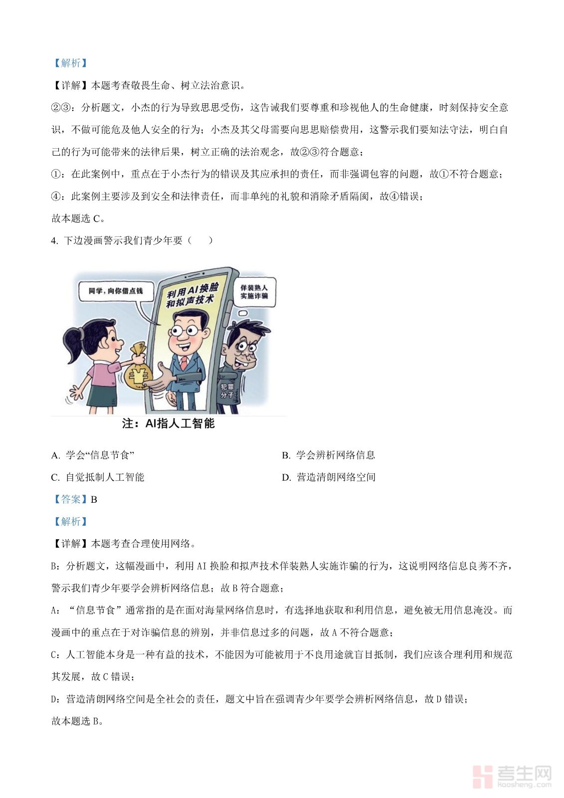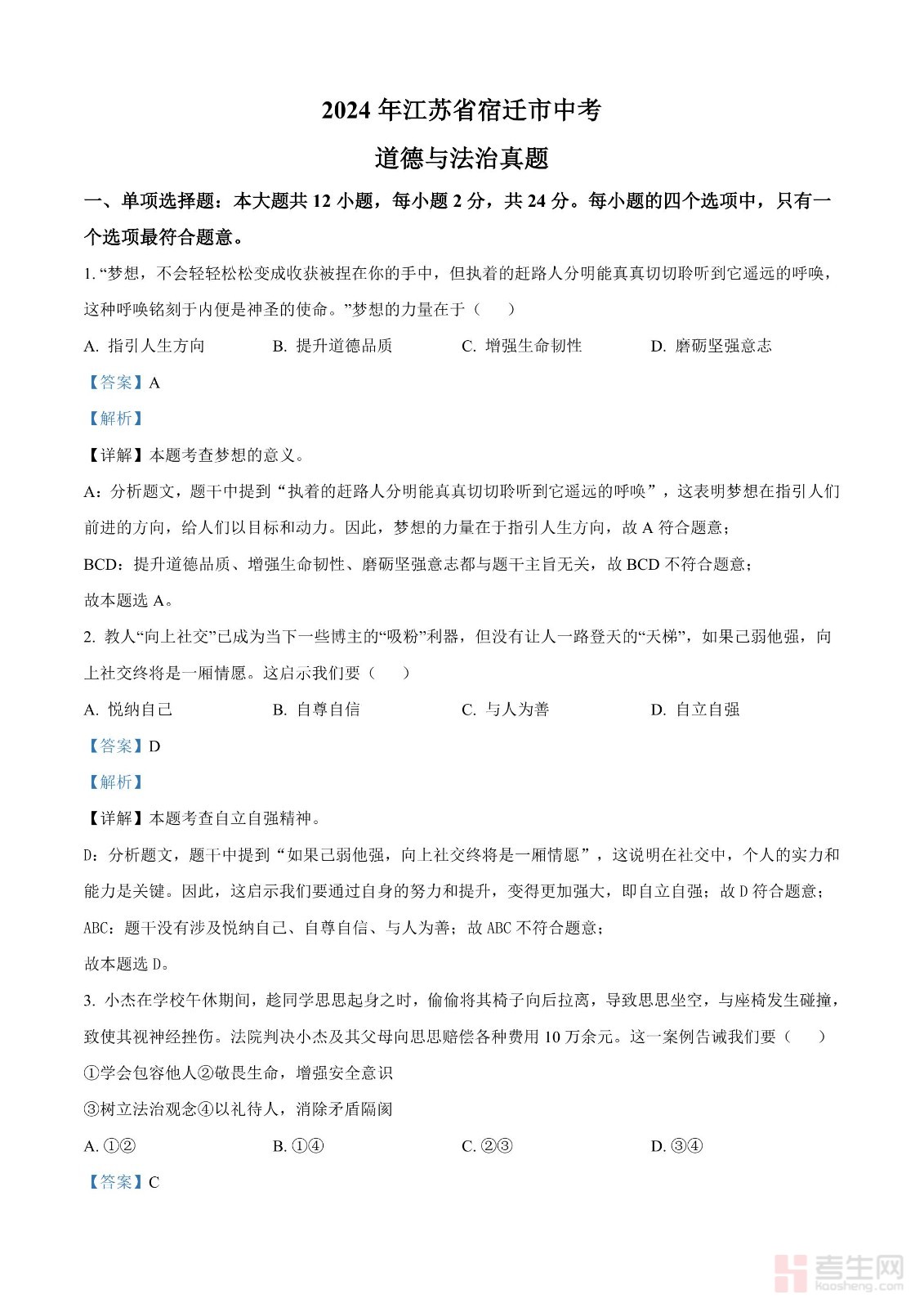 2024年江苏省宿迁市中考道德与法治真题(解析版)