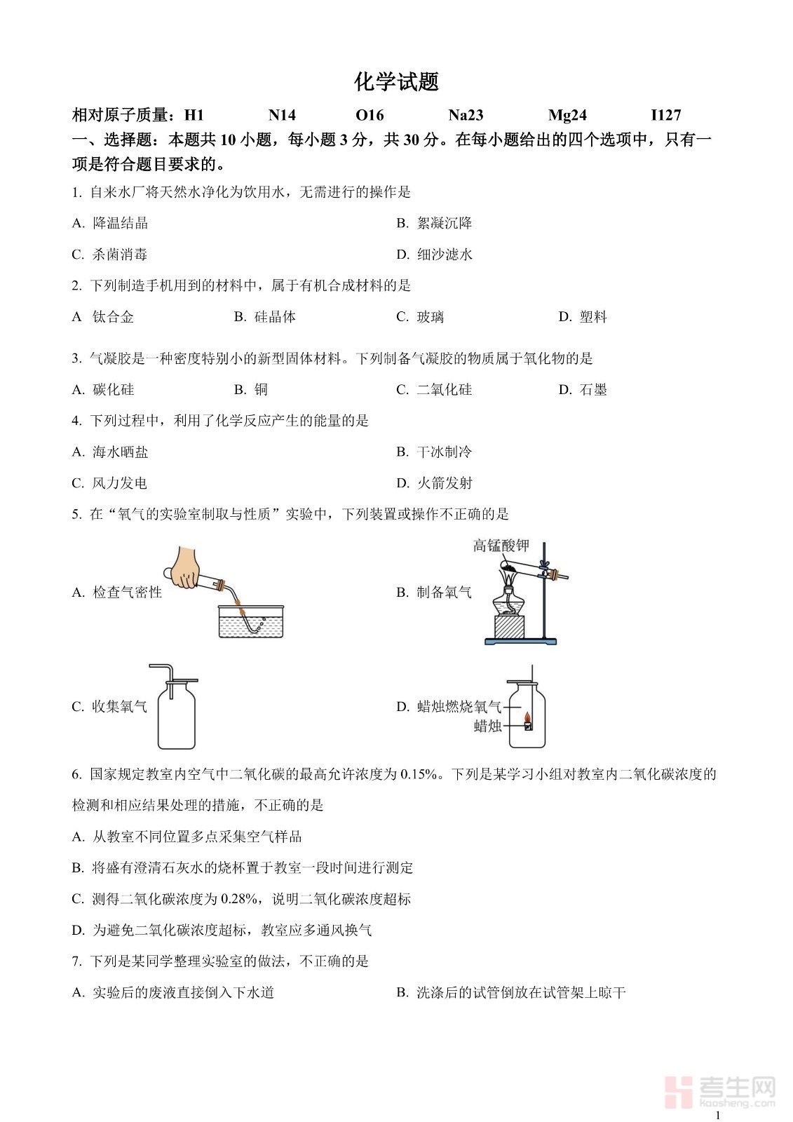 2023年广东省深圳市中考化学真题(原卷版)