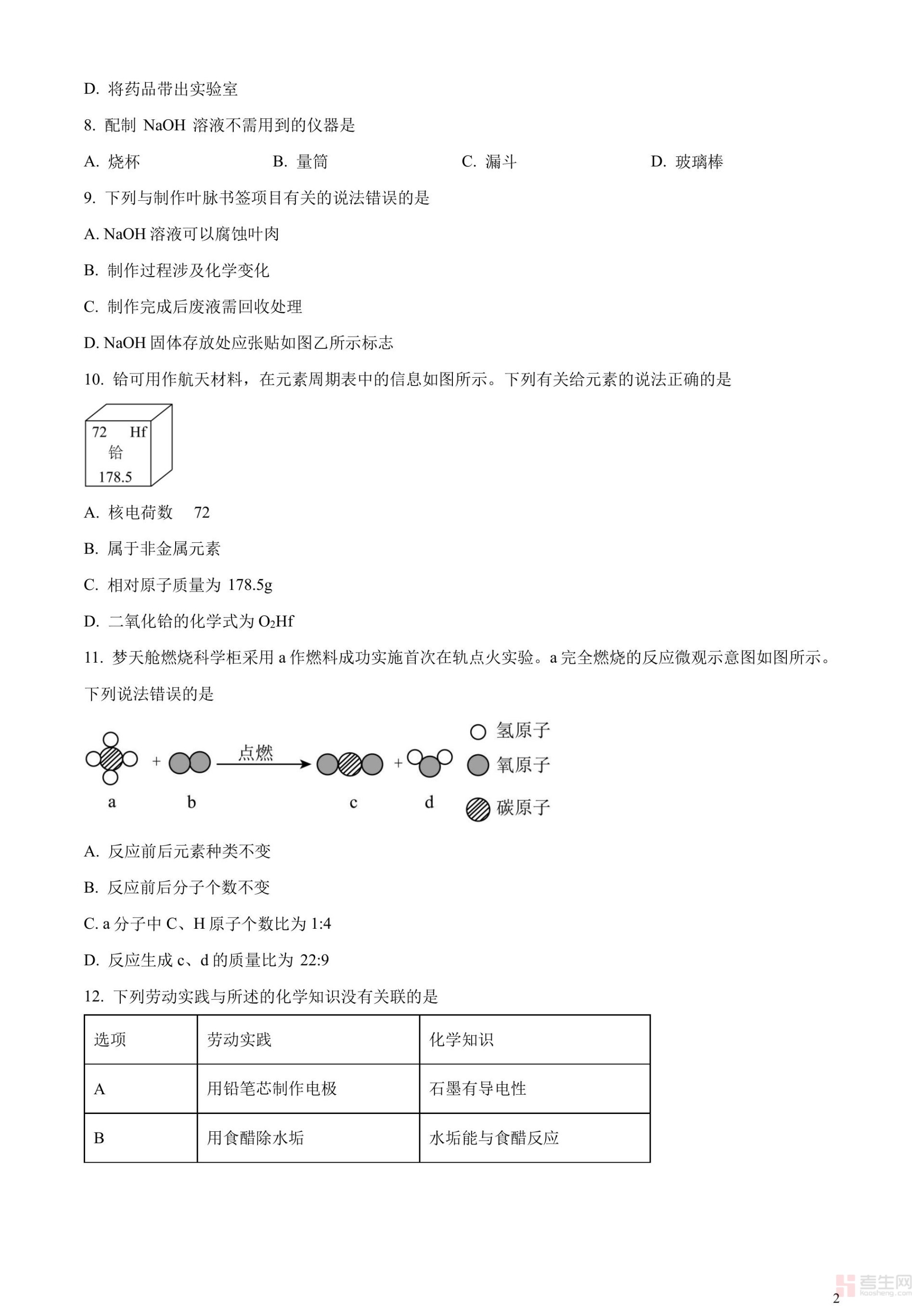 2023年广东省广州市中考化学真题 (原卷版)