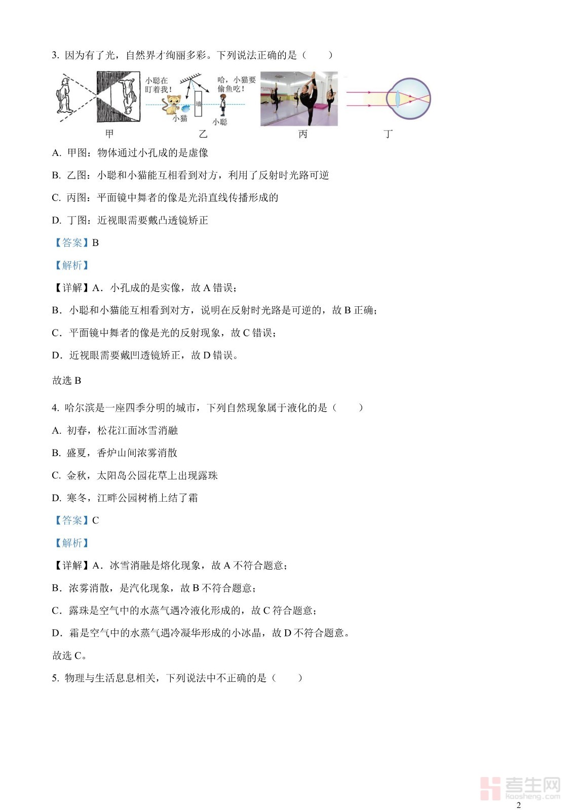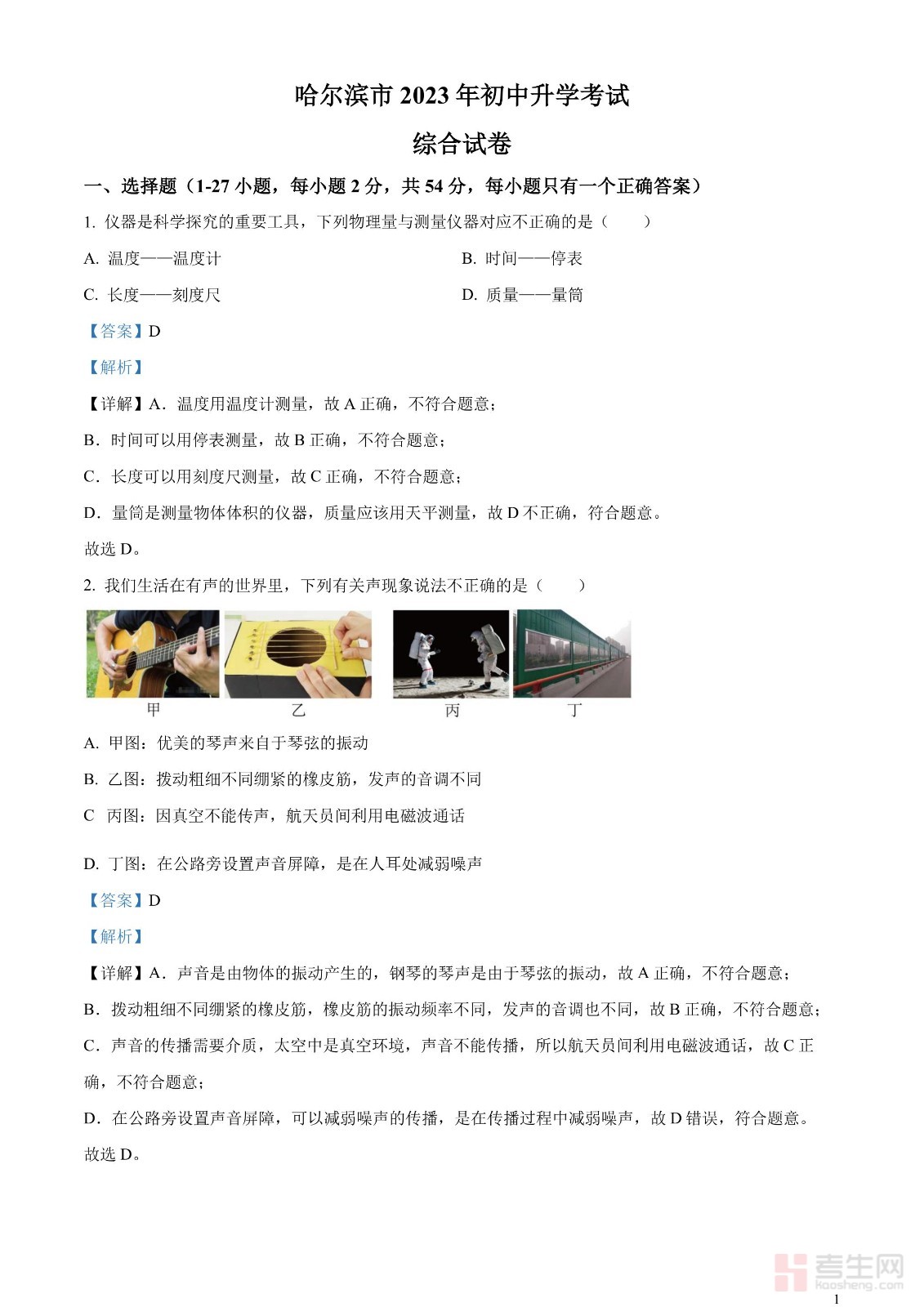 2023年黑龙江省哈尔滨市中考理综物理试题(解析版)