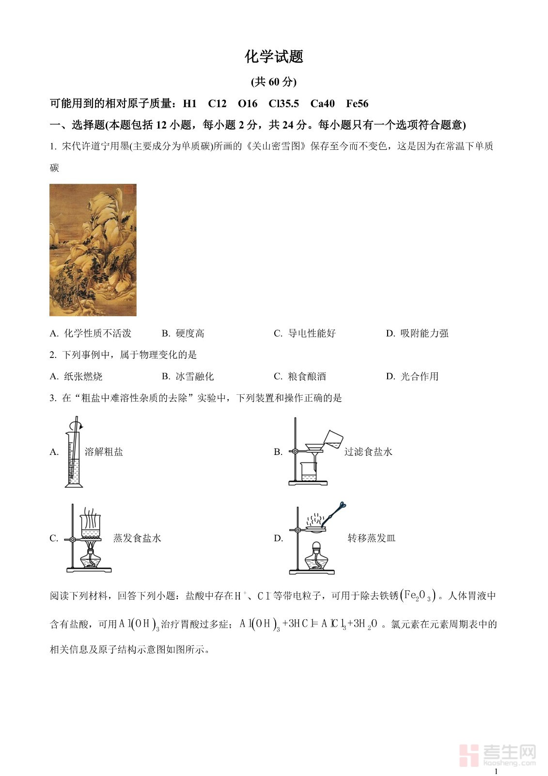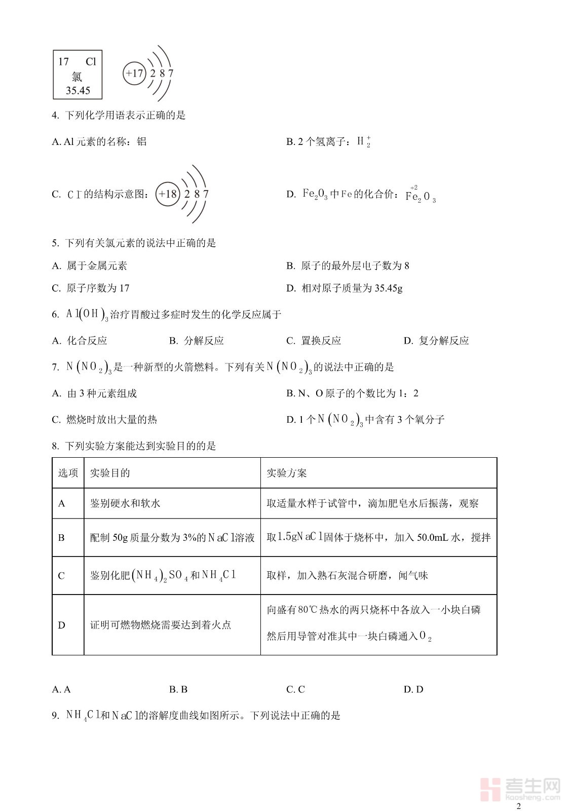 2023年广东省深圳市中考化学真题(原卷版)