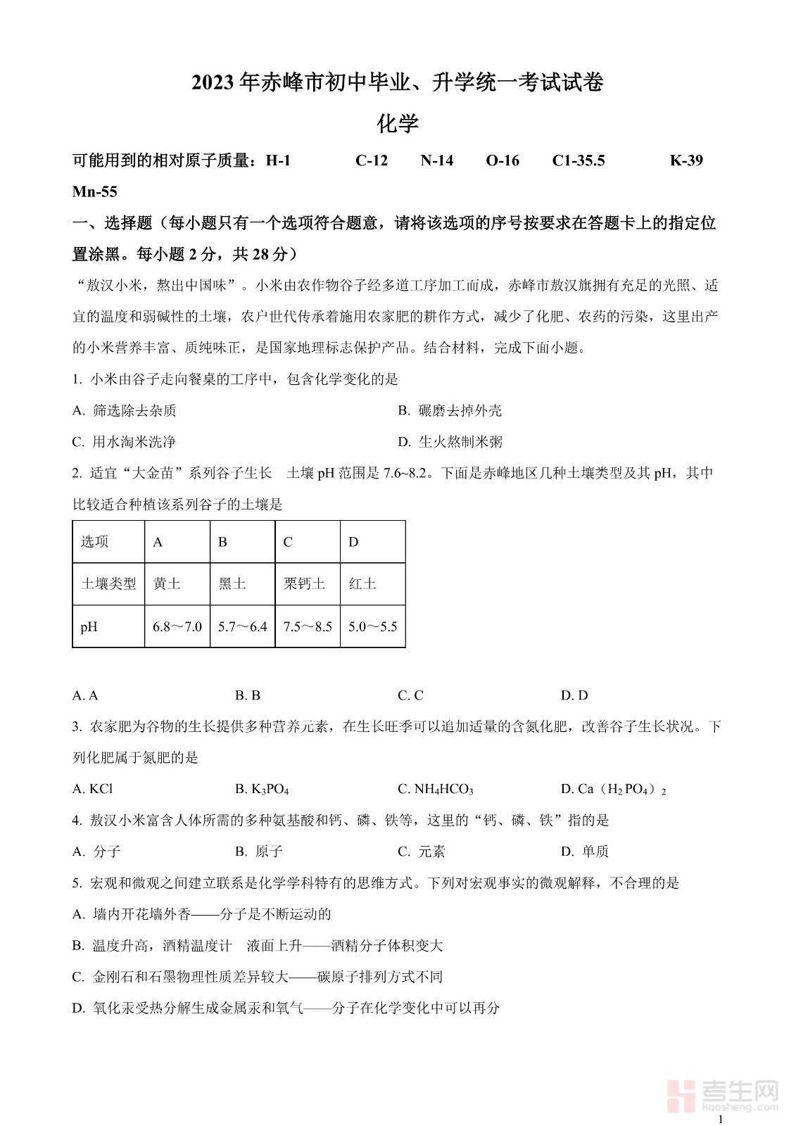 2023年广东省深圳市中考化学真题(原卷版)