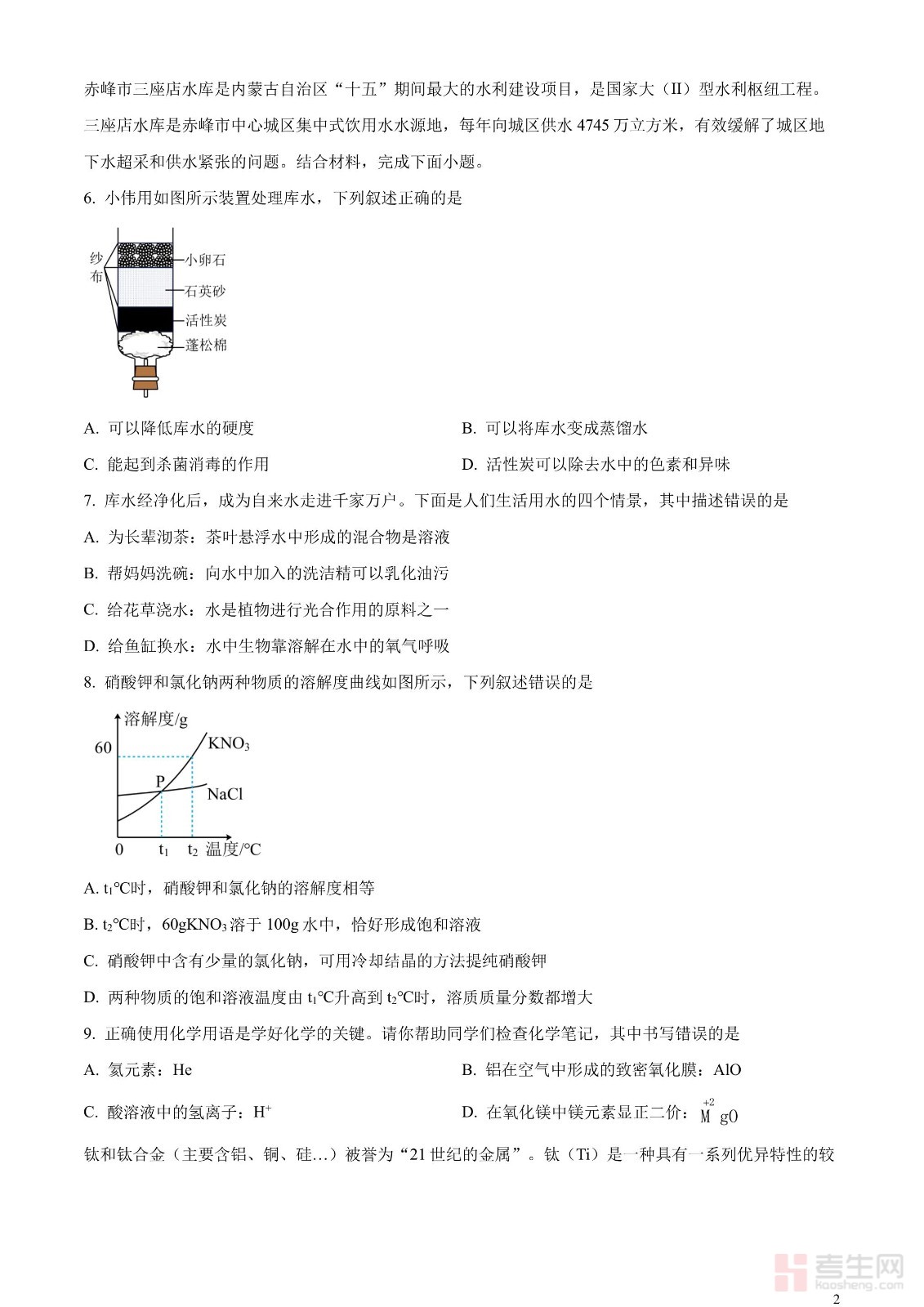2023年内蒙古赤峰市中考化学真题(原卷版)