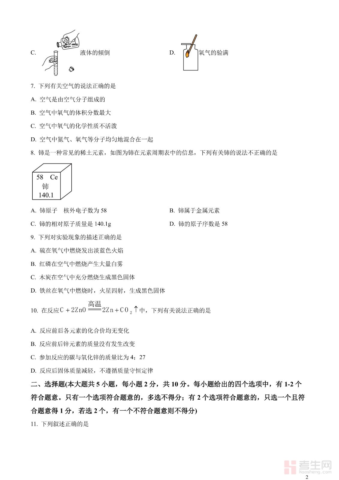 2023年中考化学真题