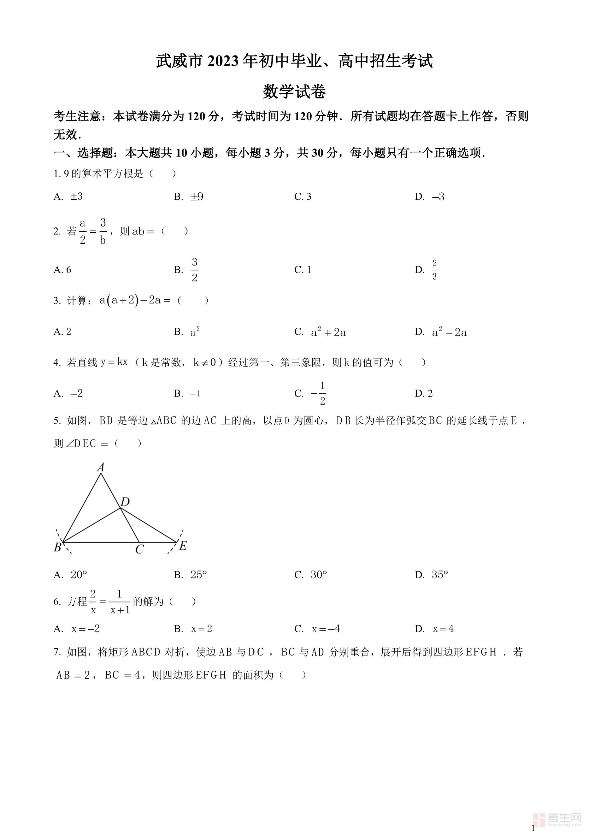 2023年辽宁省沈阳市中考数学真题(解析版)