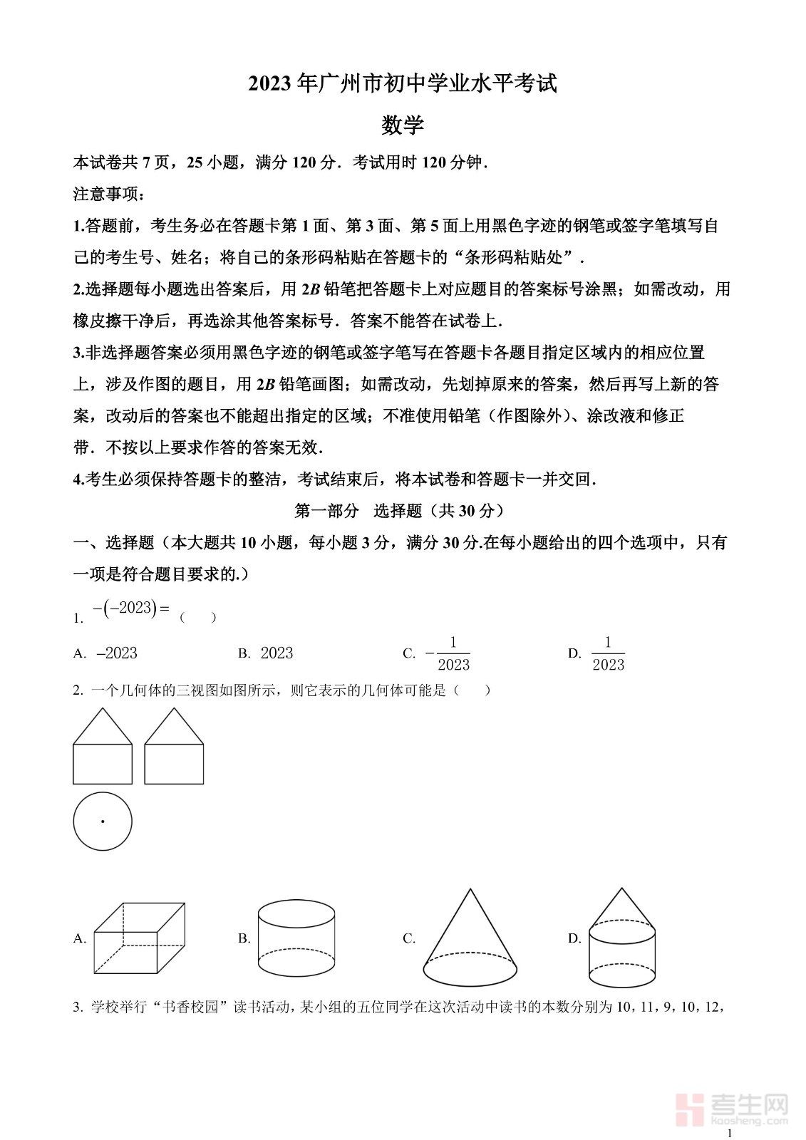 2023年辽宁省沈阳市中考数学真题(解析版)