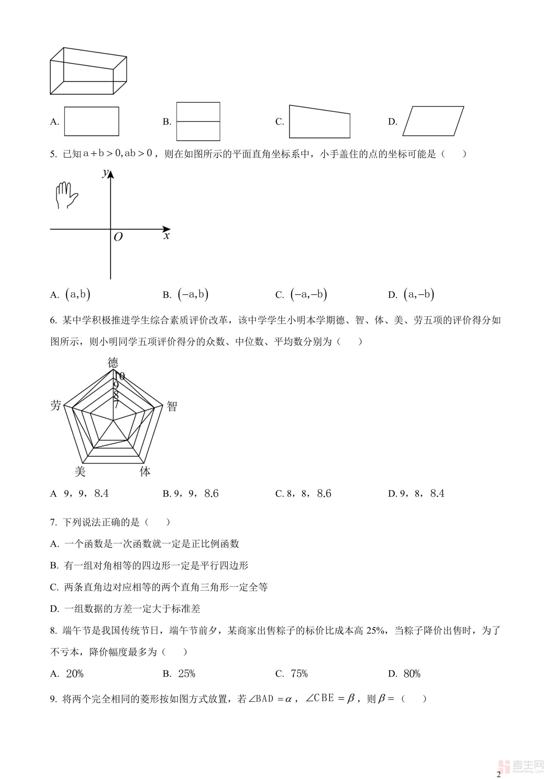 2023年广东省深圳市中考数学真题 (原卷版)