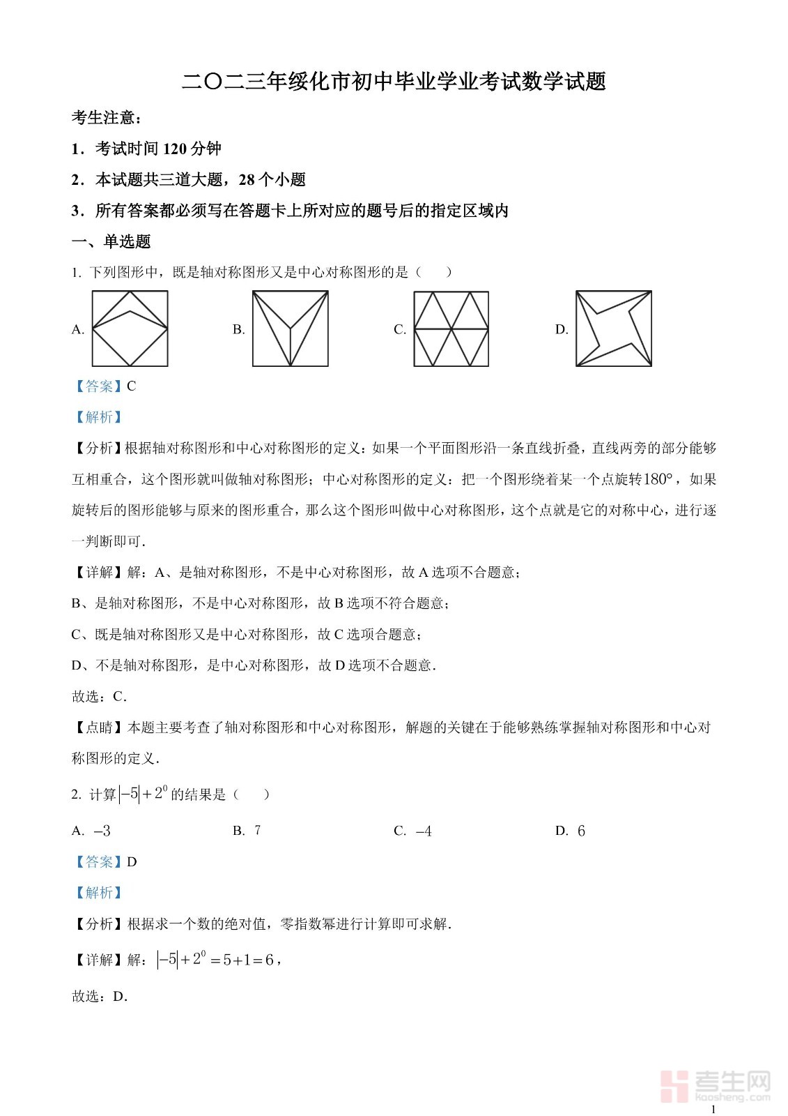 2023年黑龙江省绥化市中考数学真题(解析版)