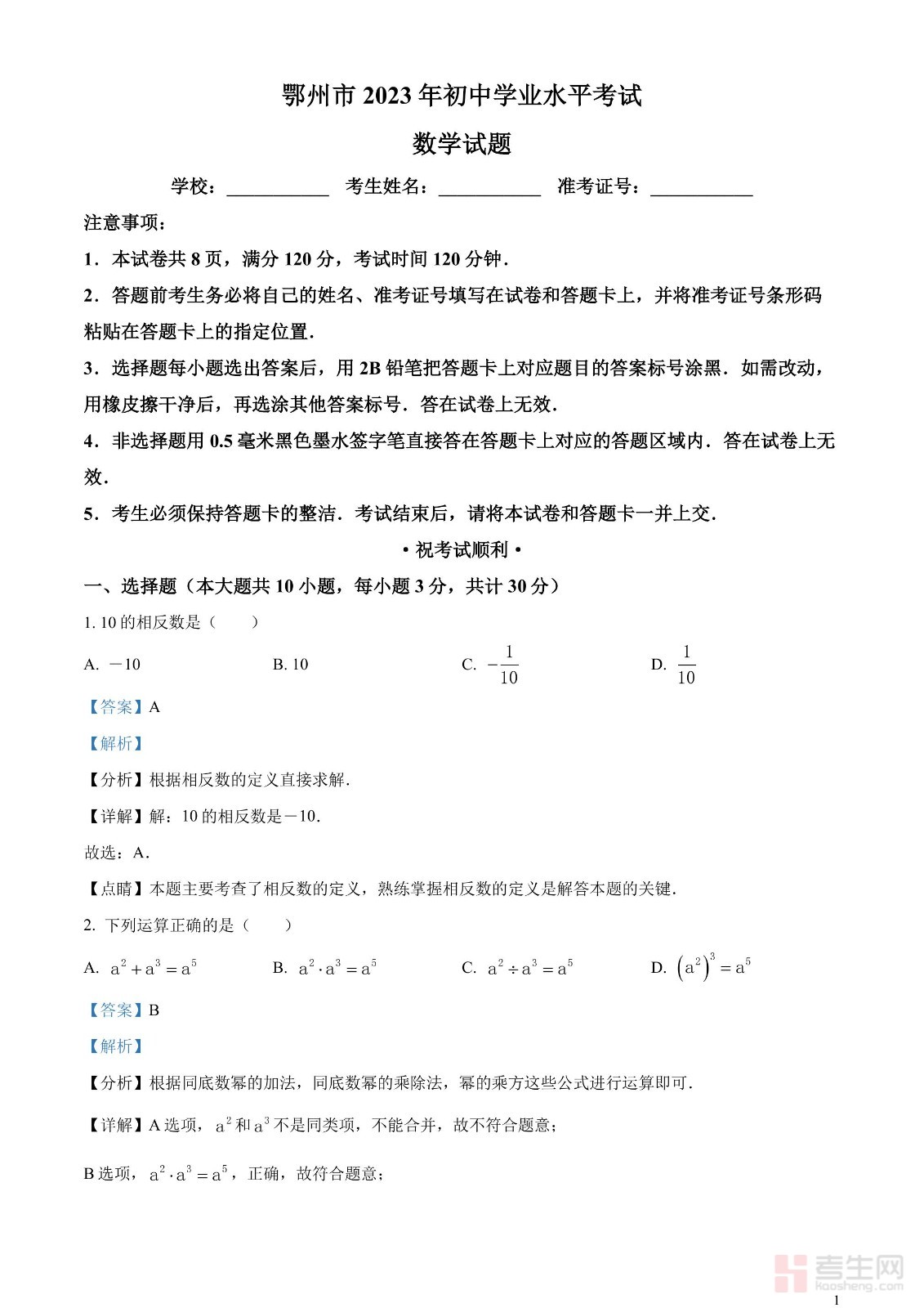 2023年辽宁省沈阳市中考数学真题(解析版)