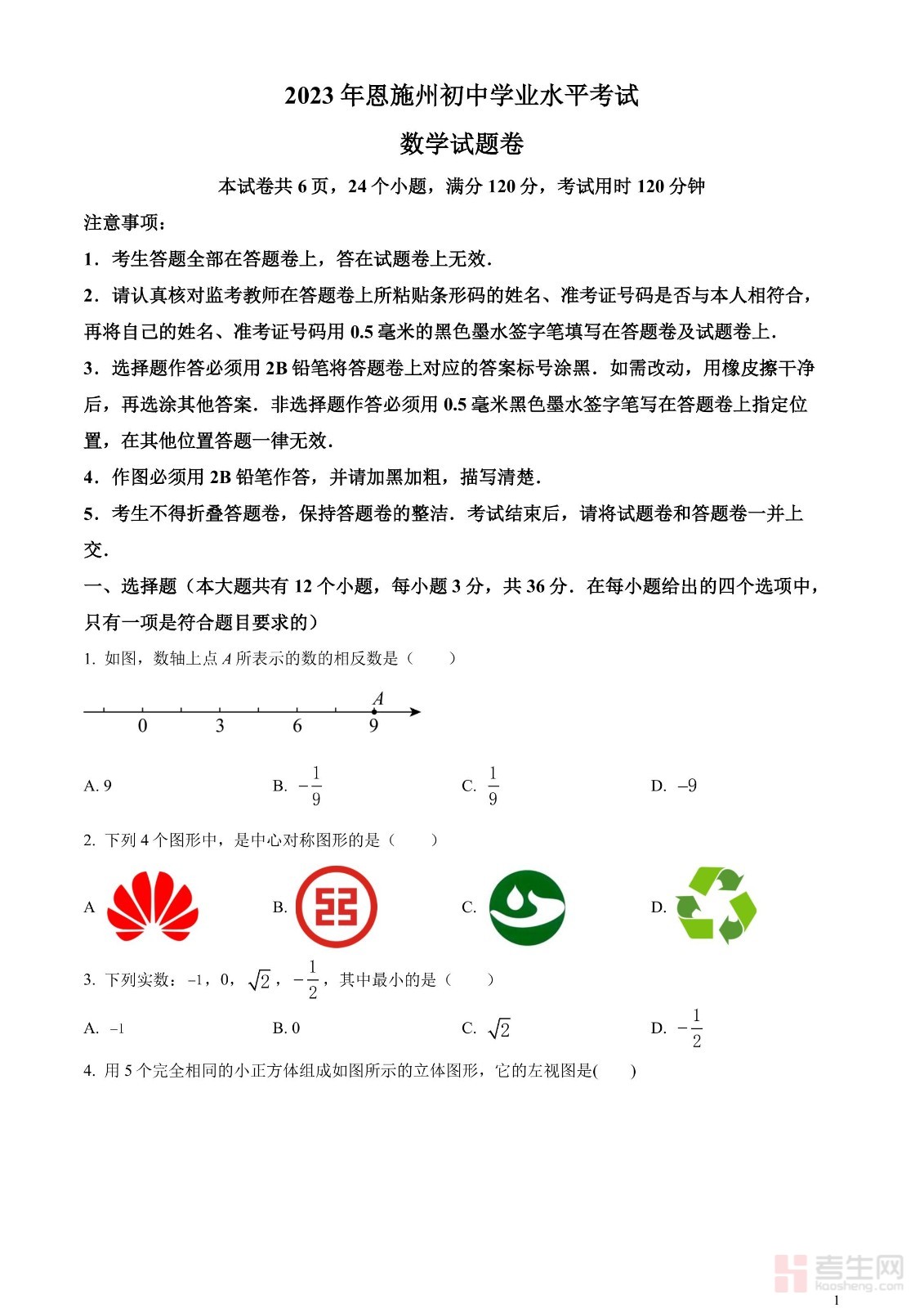 2023年湖北省恩施州中考数学真题 (原卷版)