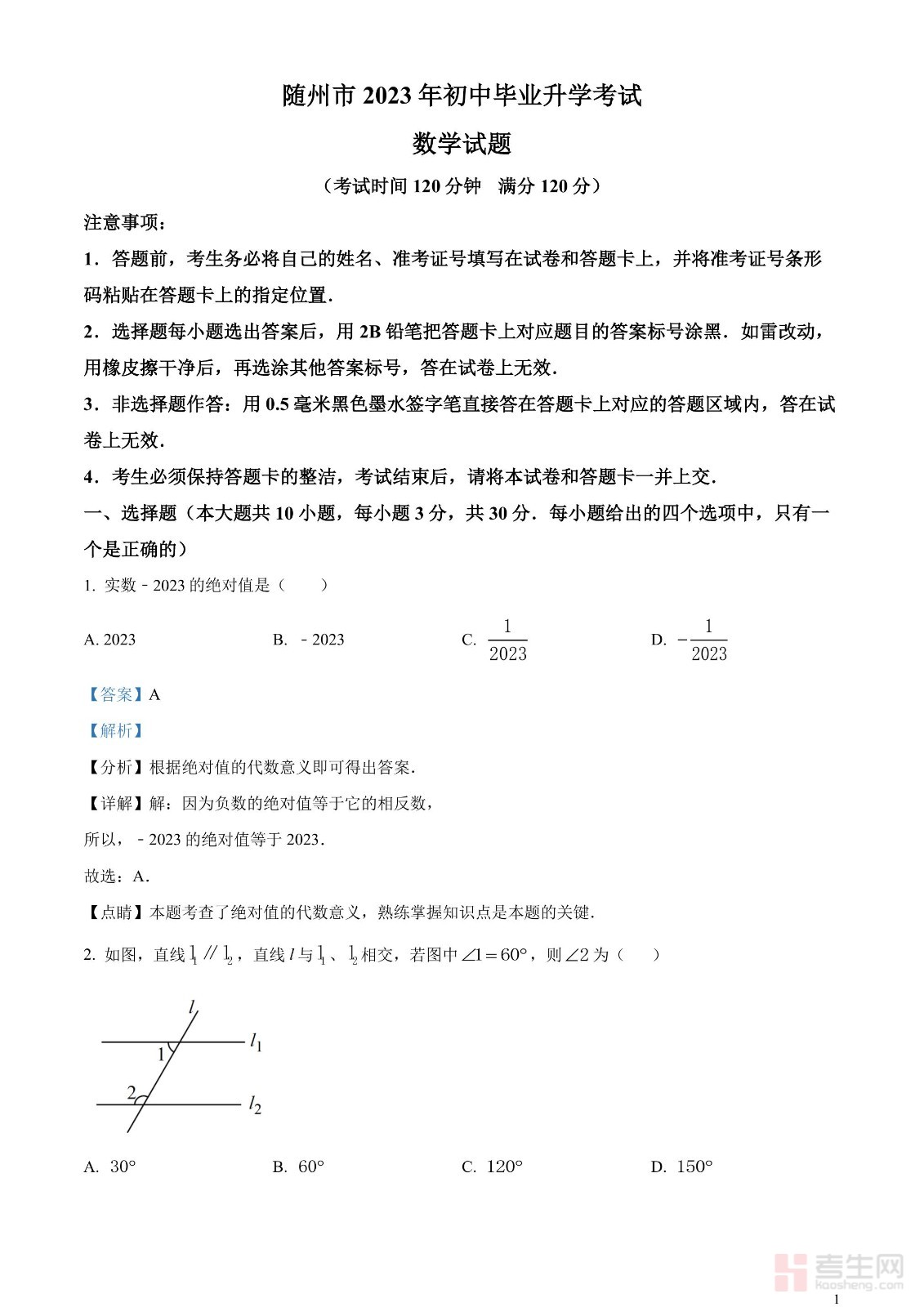 2023年辽宁省沈阳市中考数学真题(解析版)