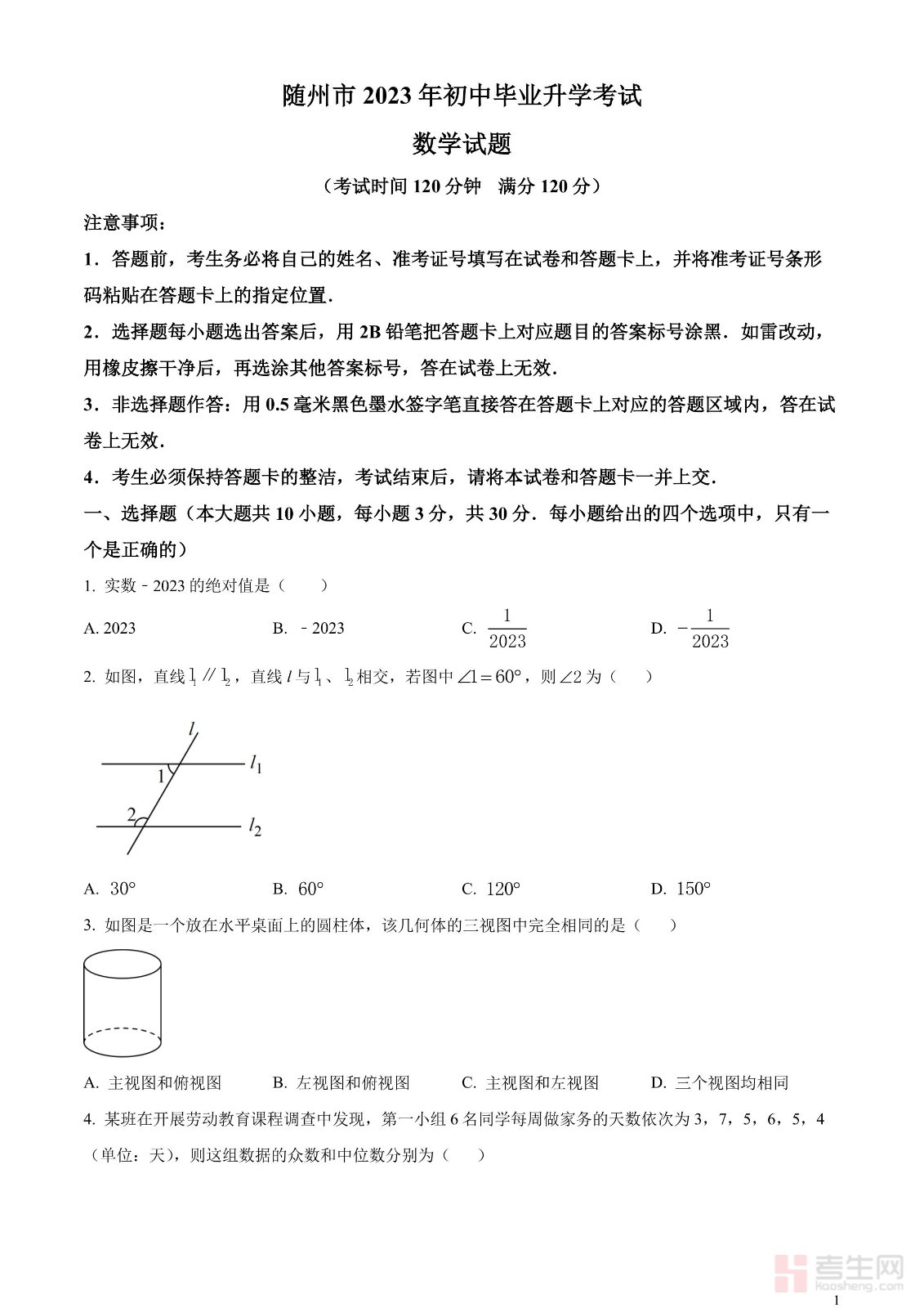 2023年辽宁省沈阳市中考数学真题(解析版)