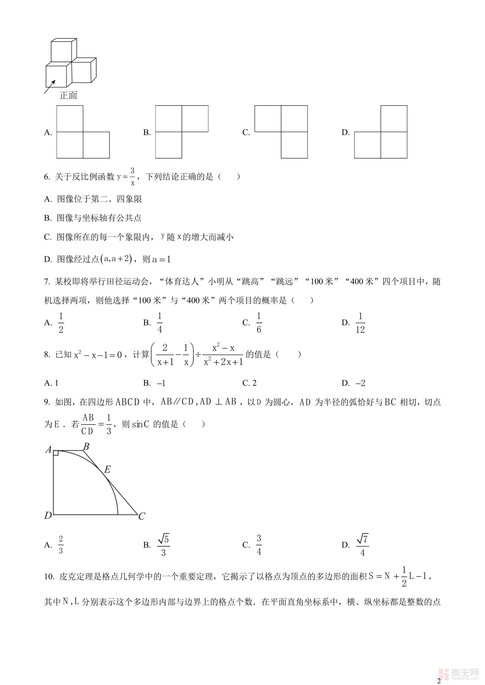 2023年广东省深圳市中考数学真题 (原卷版)