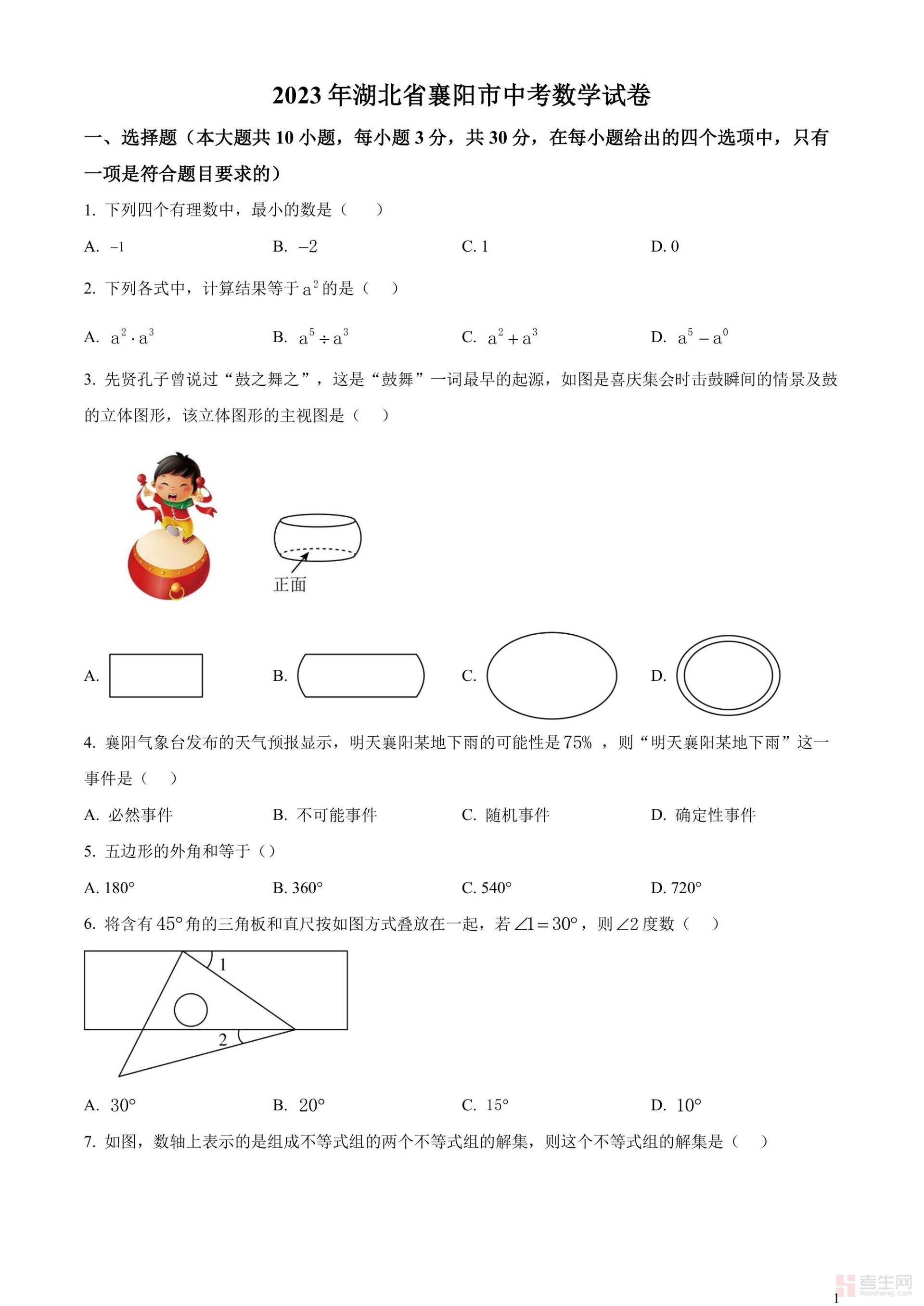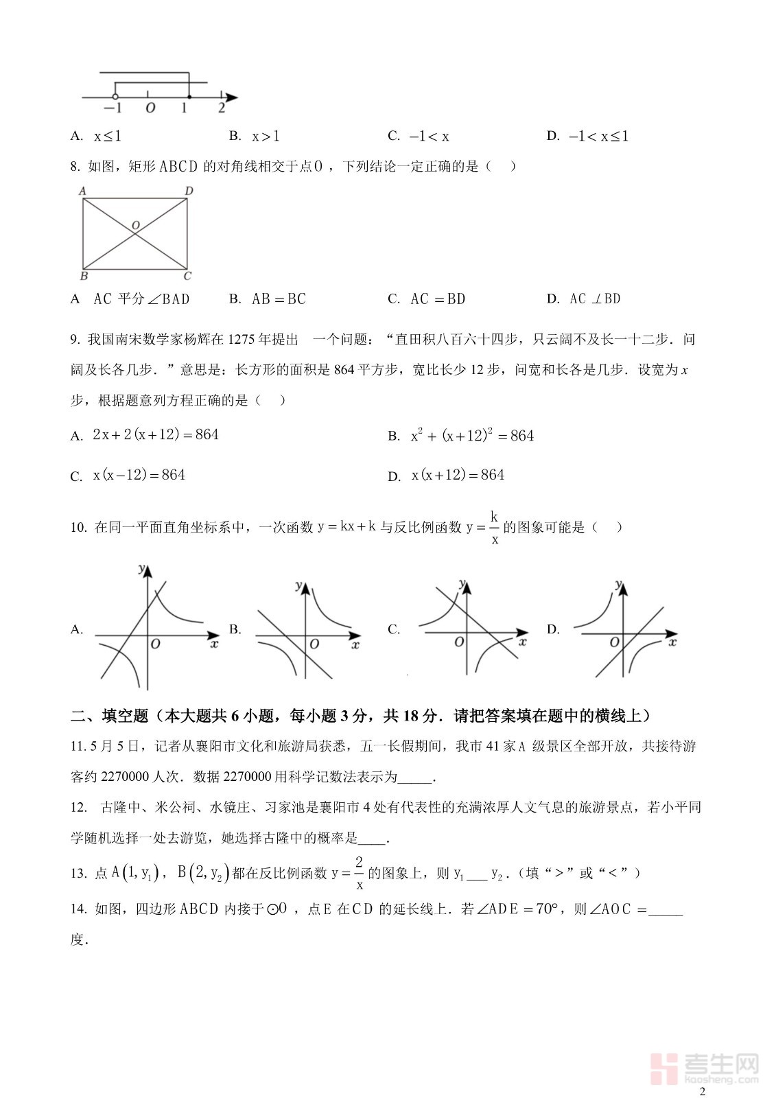 2023年湖北省襄阳市中考数学真题(原卷版)