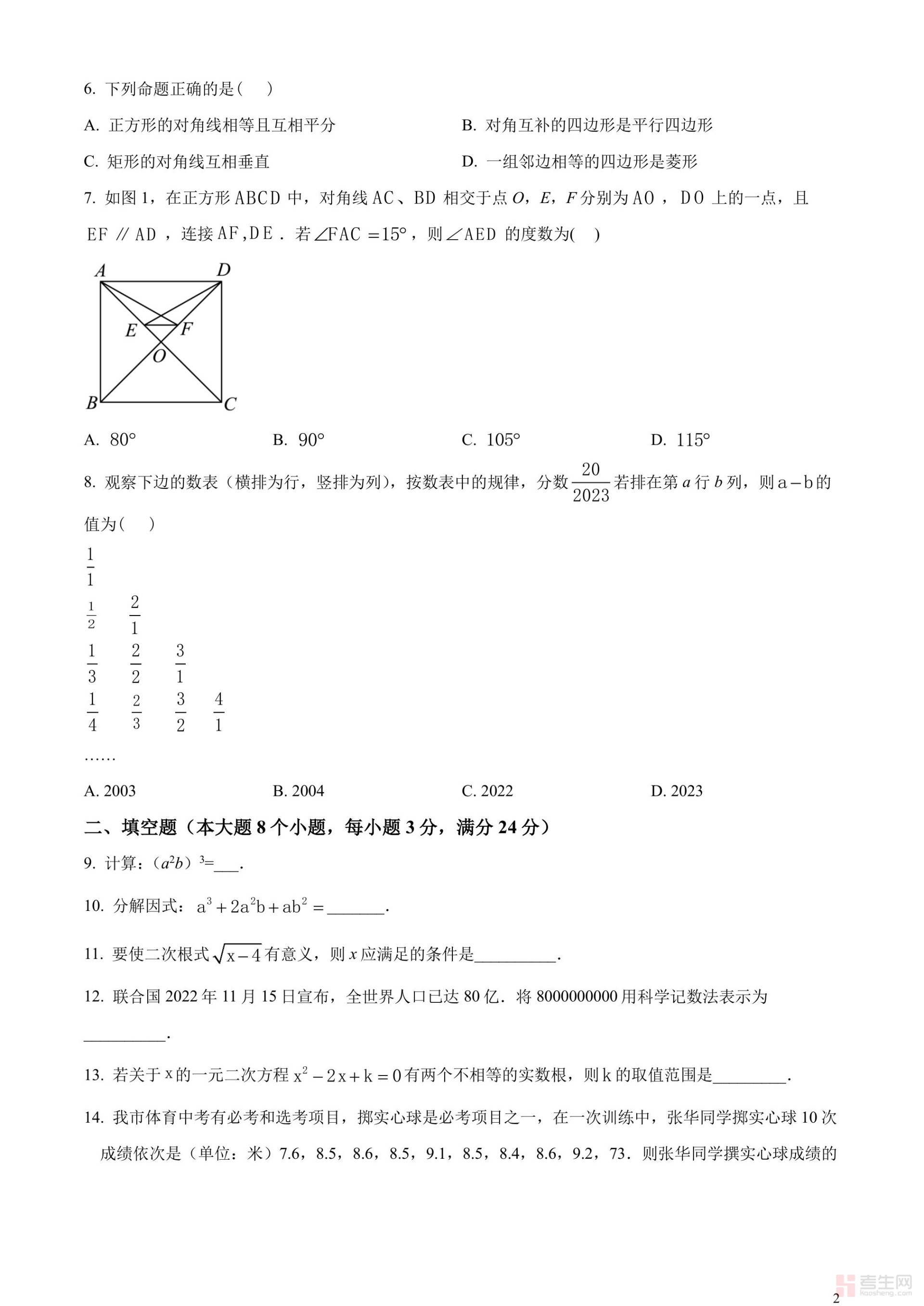 2023年辽宁省沈阳市中考数学真题(解析版)
