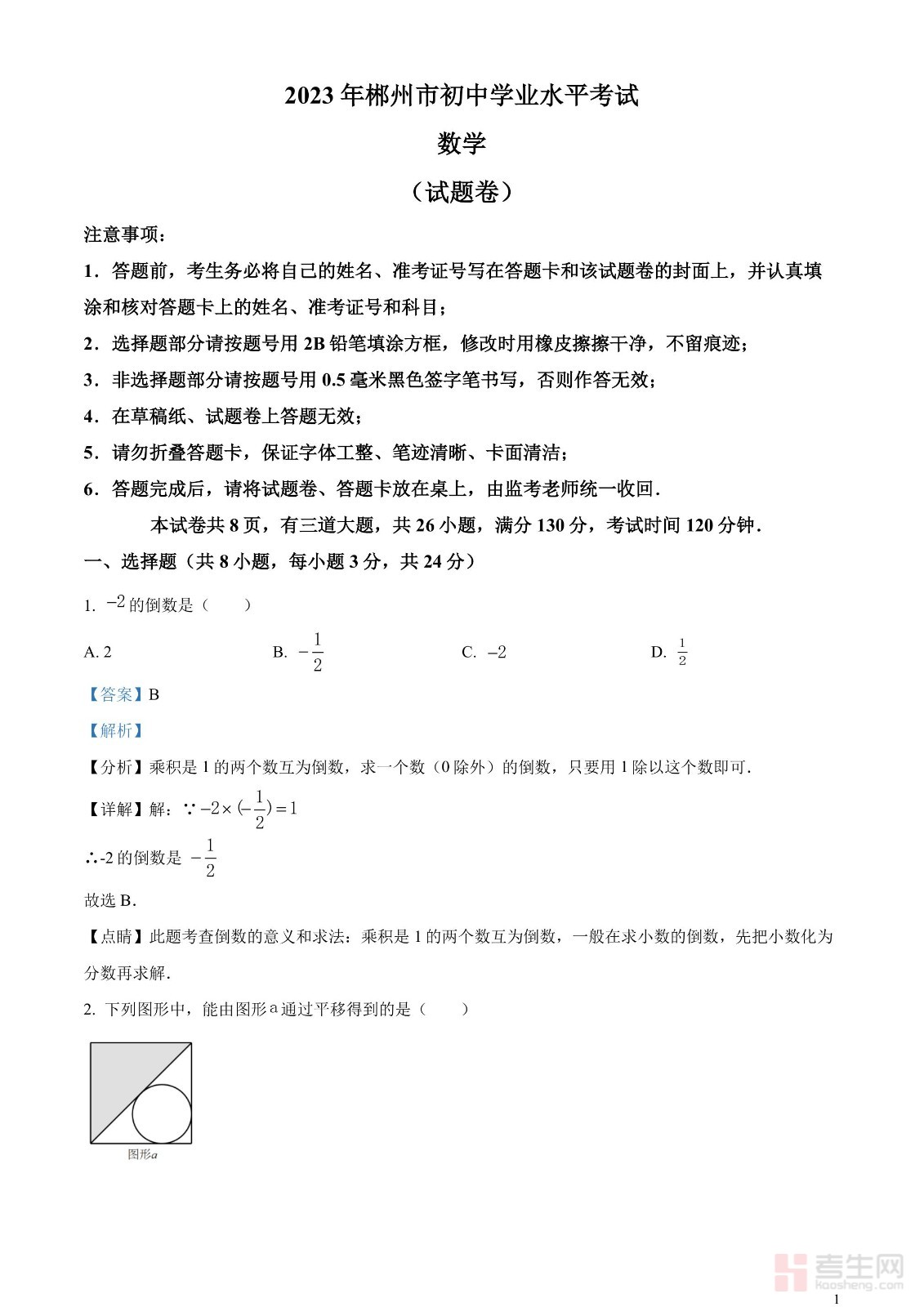 2023年辽宁省沈阳市中考数学真题(解析版)
