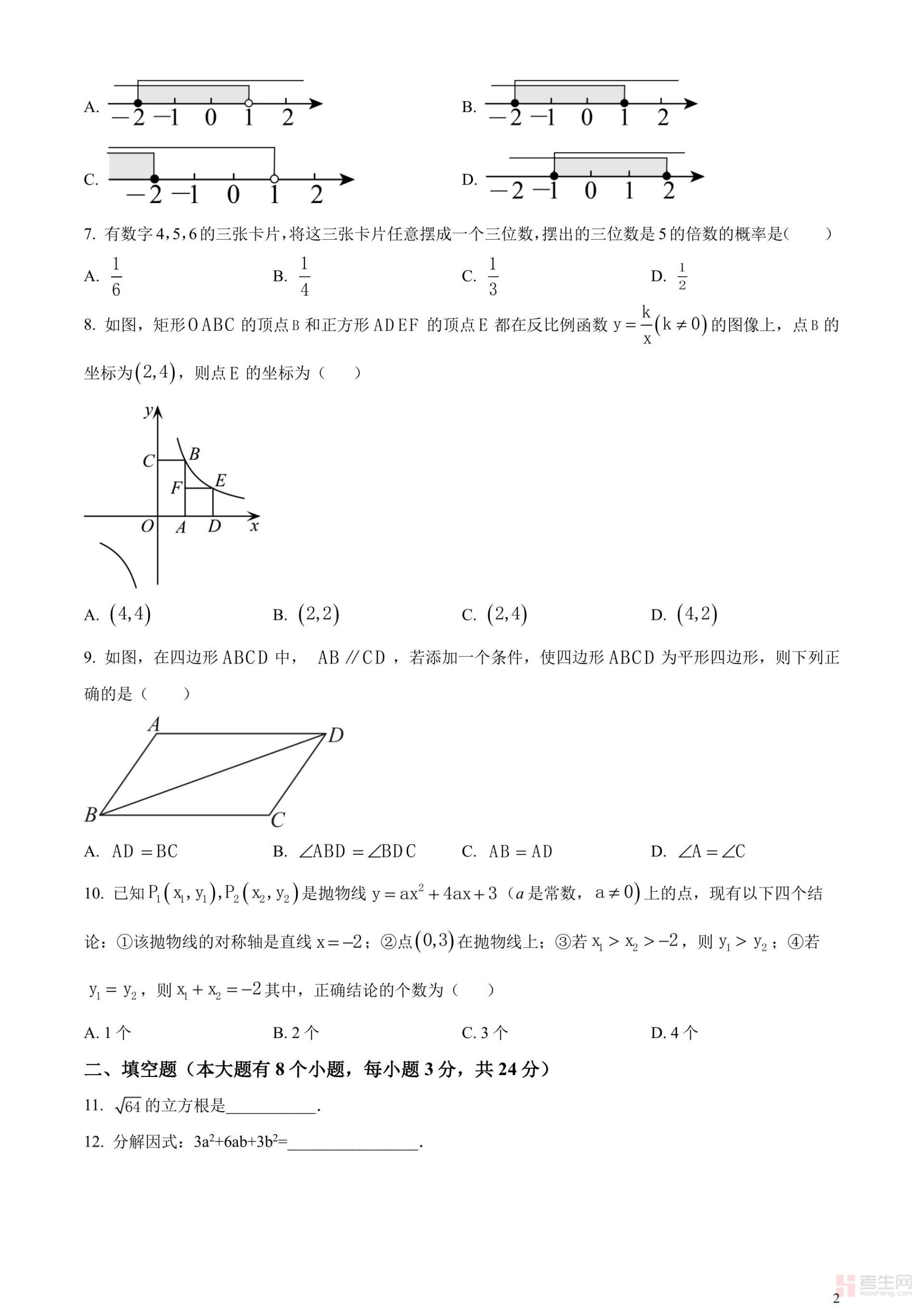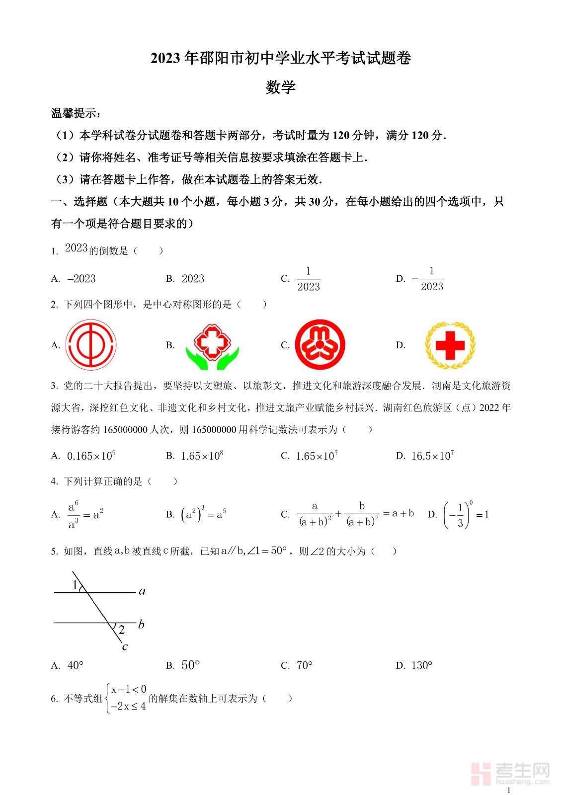 2023年湖南省邵阳市中考数学真题(原卷版)