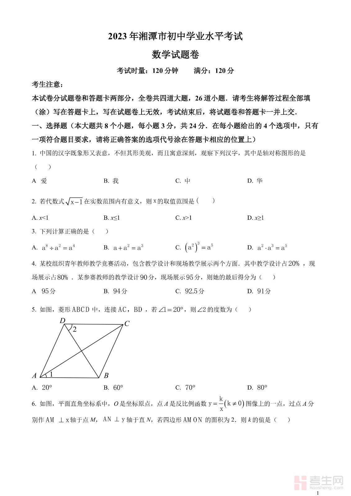 2023年湖南省湘潭市中考数学真题(原卷版)