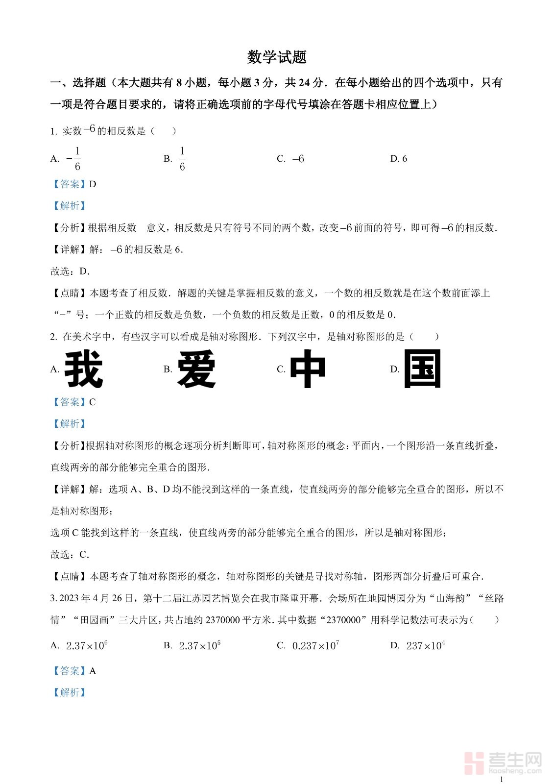 2023年辽宁省沈阳市中考数学真题(解析版)