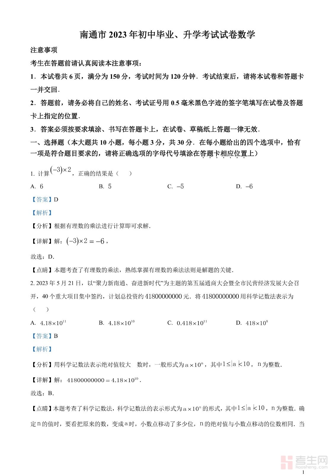 2023年辽宁省沈阳市中考数学真题(解析版)
