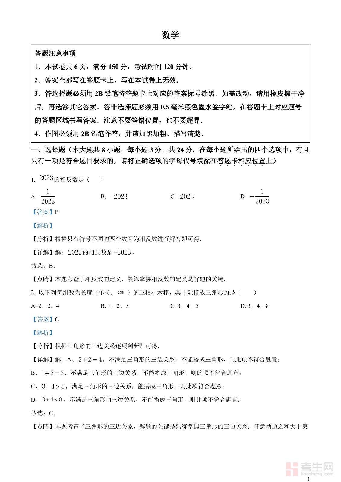 2023年辽宁省沈阳市中考数学真题(解析版)