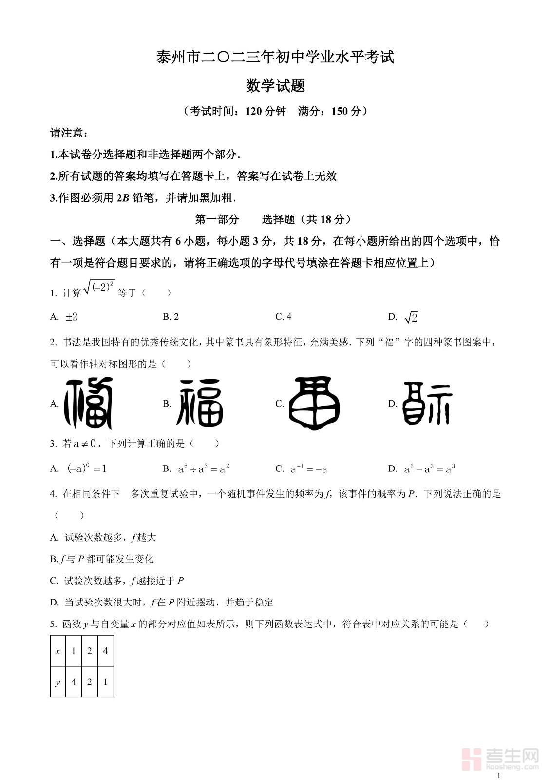 2023年辽宁省沈阳市中考数学真题(解析版)