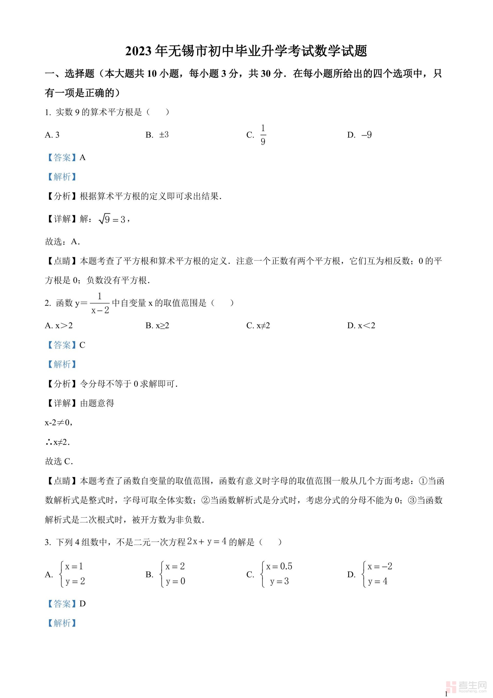 2023年辽宁省沈阳市中考数学真题(解析版)