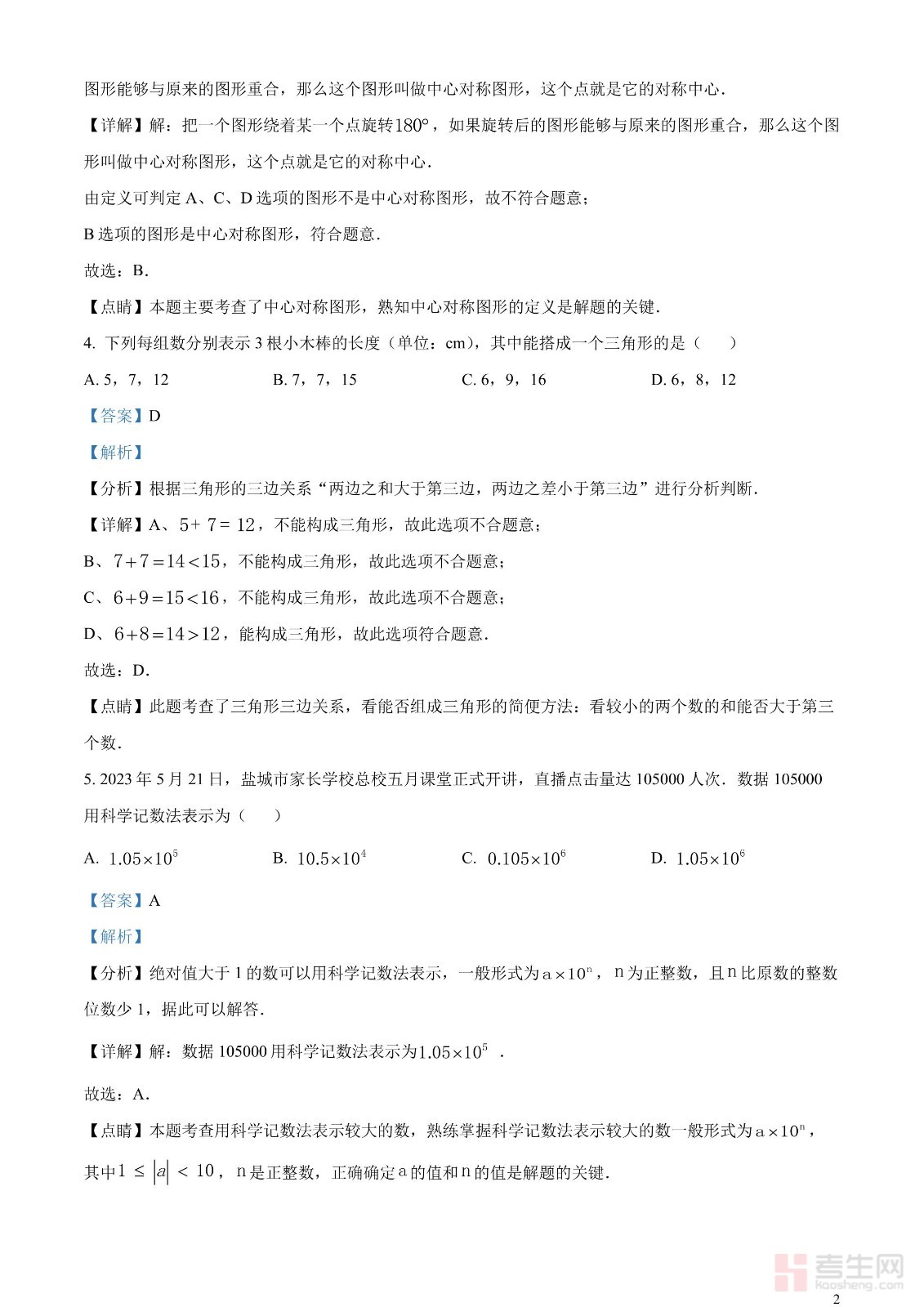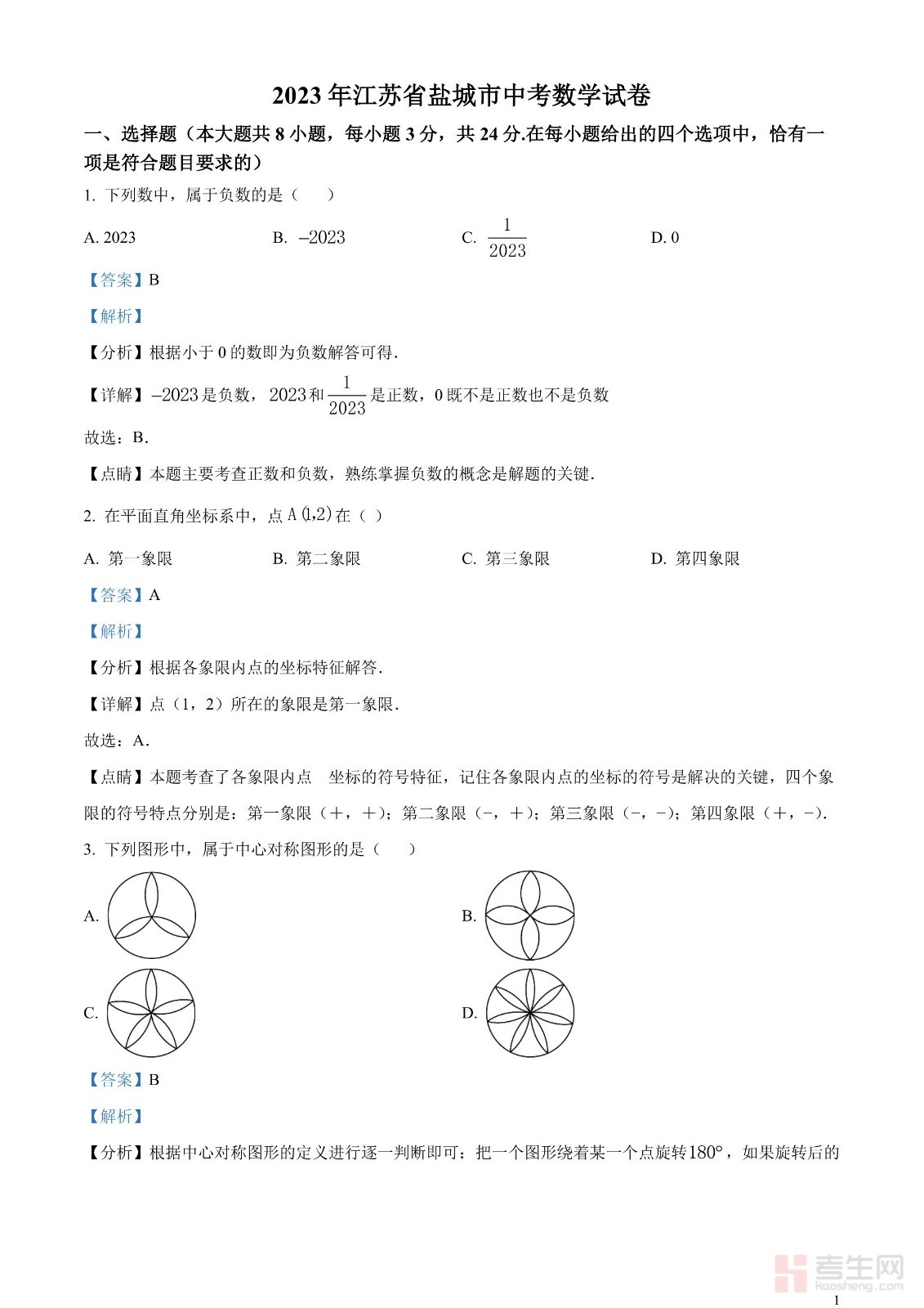 2023年江苏省盐城市中考数学真题(解析版)