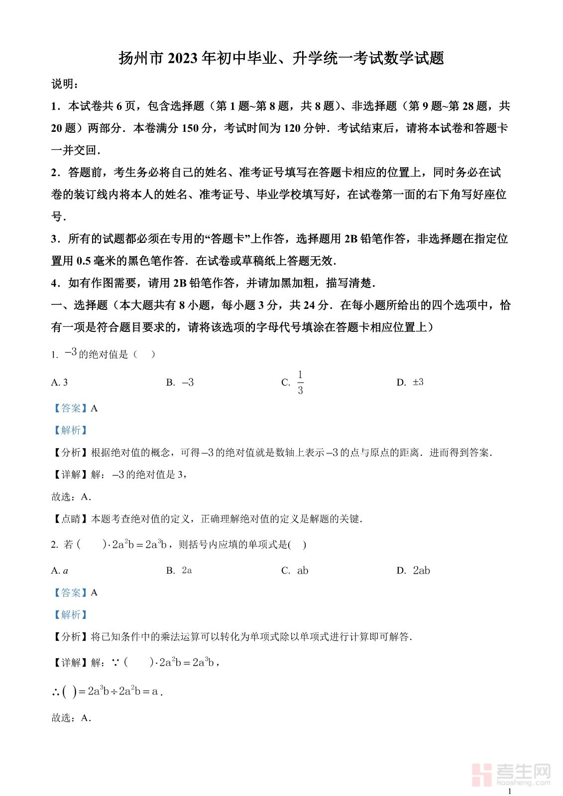 2023年辽宁省沈阳市中考数学真题(解析版)