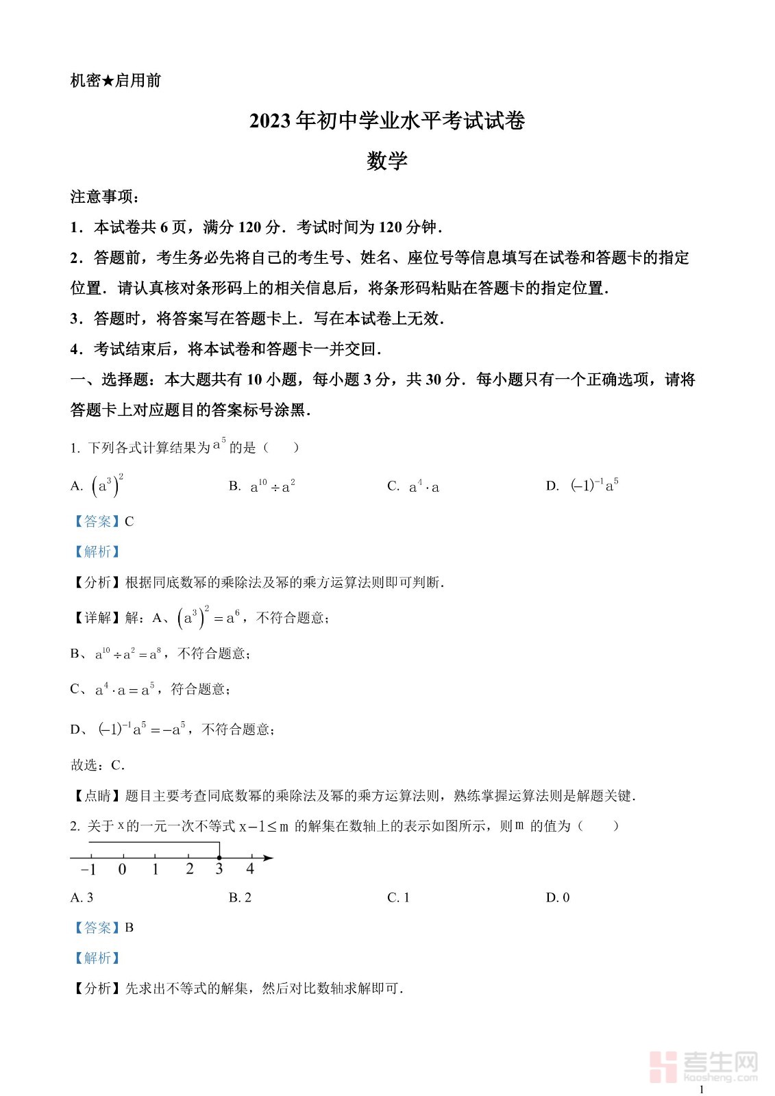2023年中考数学真题