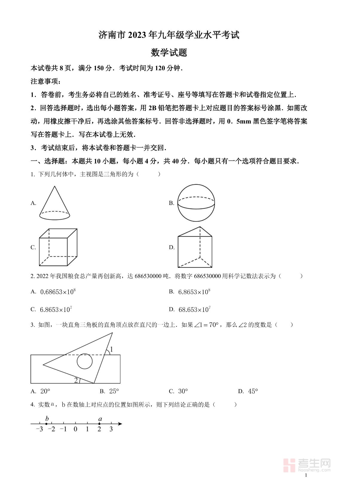 2023年山东省济南市中考数学真题(原卷版)