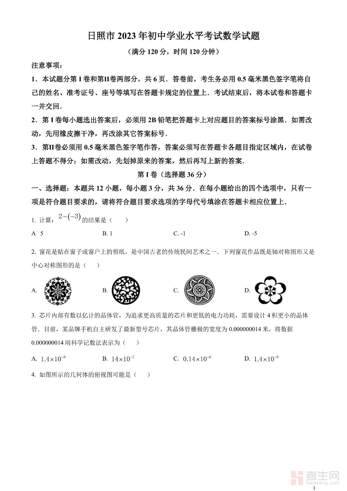 2023年山东省日照市中考数学真题(原卷版)