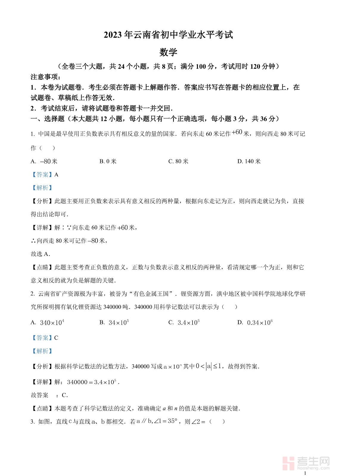 2023年辽宁省沈阳市中考数学真题(解析版)
