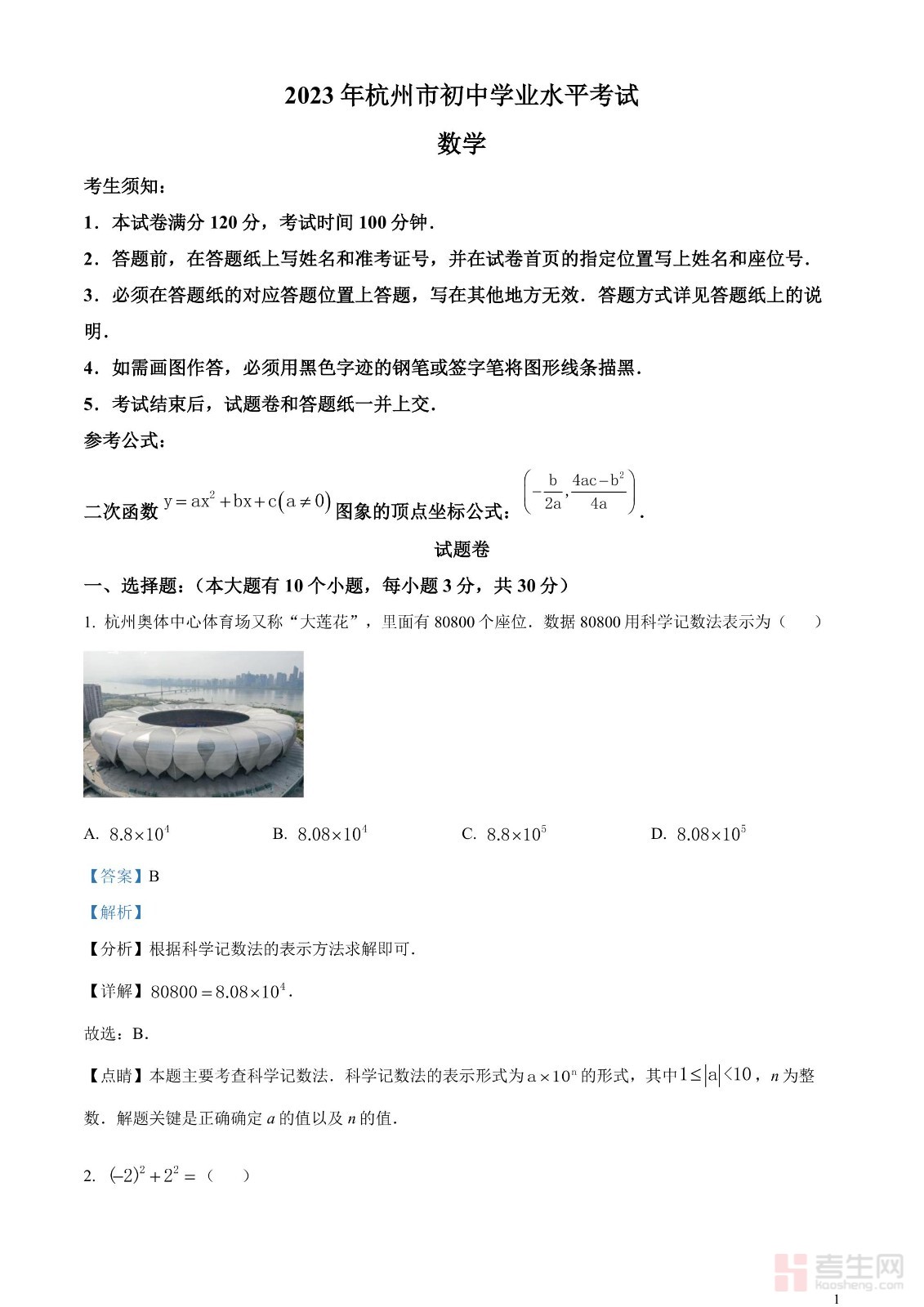 2023年浙江省杭州市中考数学真题(解析版)