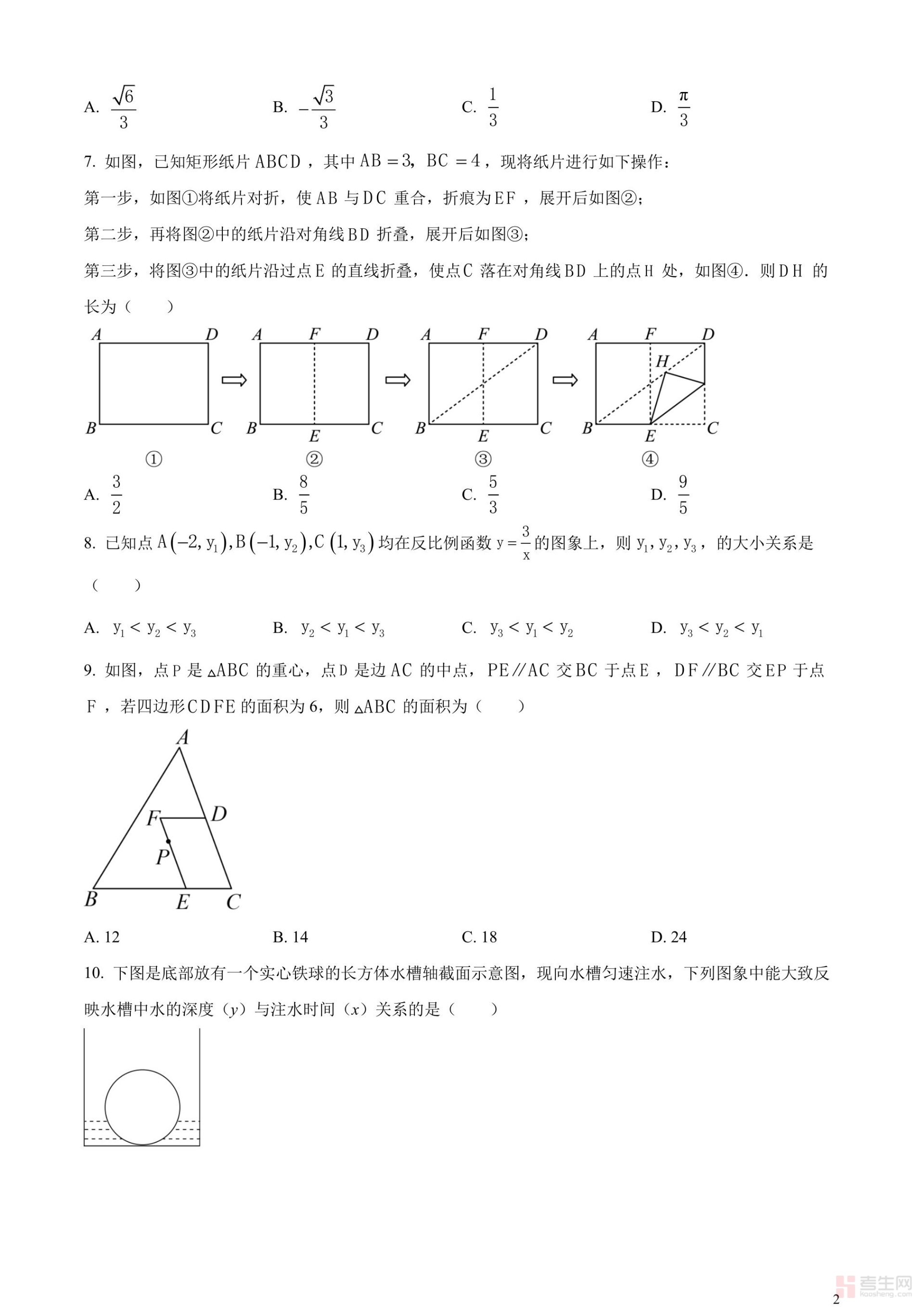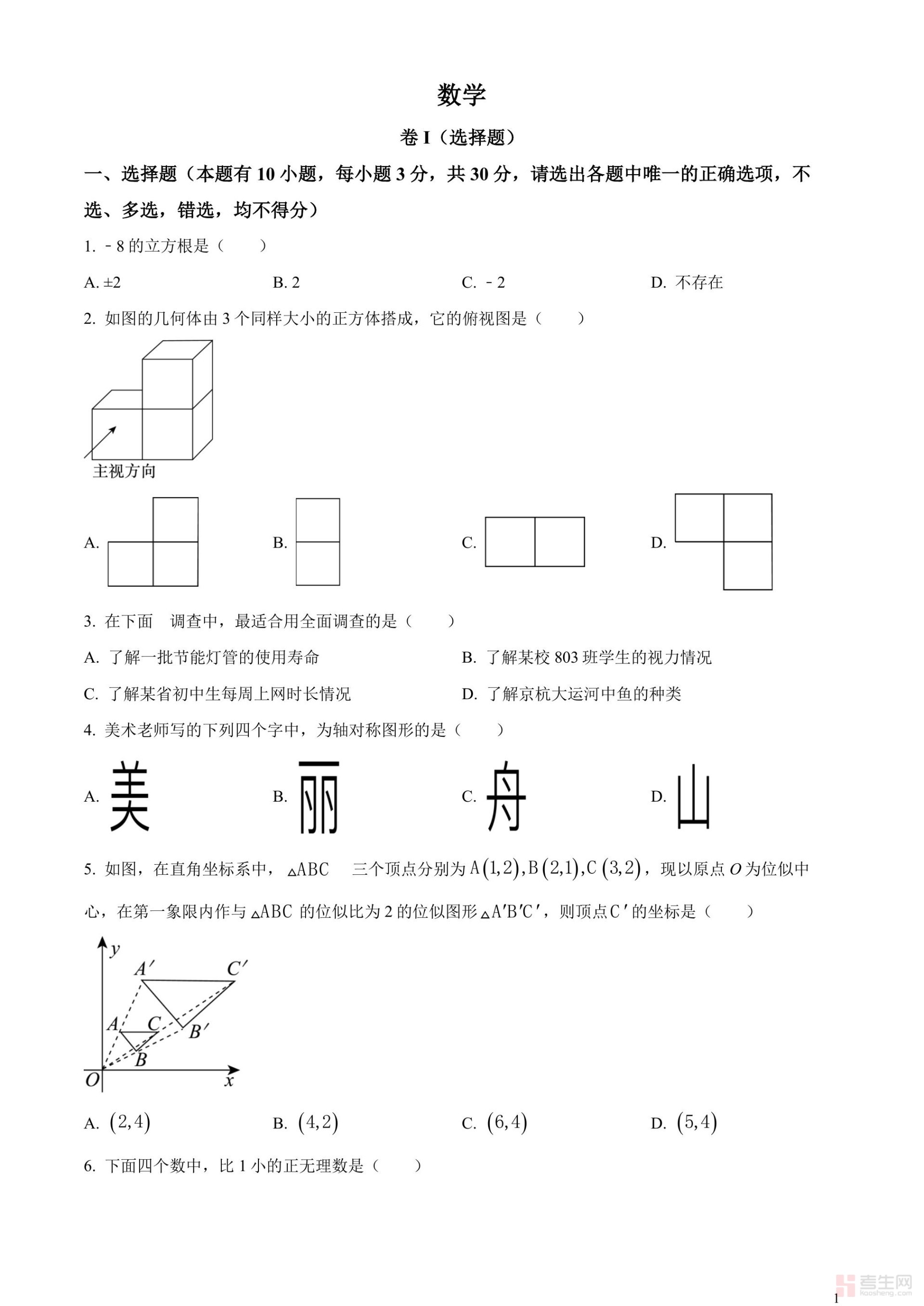 2023年浙江省嘉兴(舟山)市中考数学真题(原卷版)