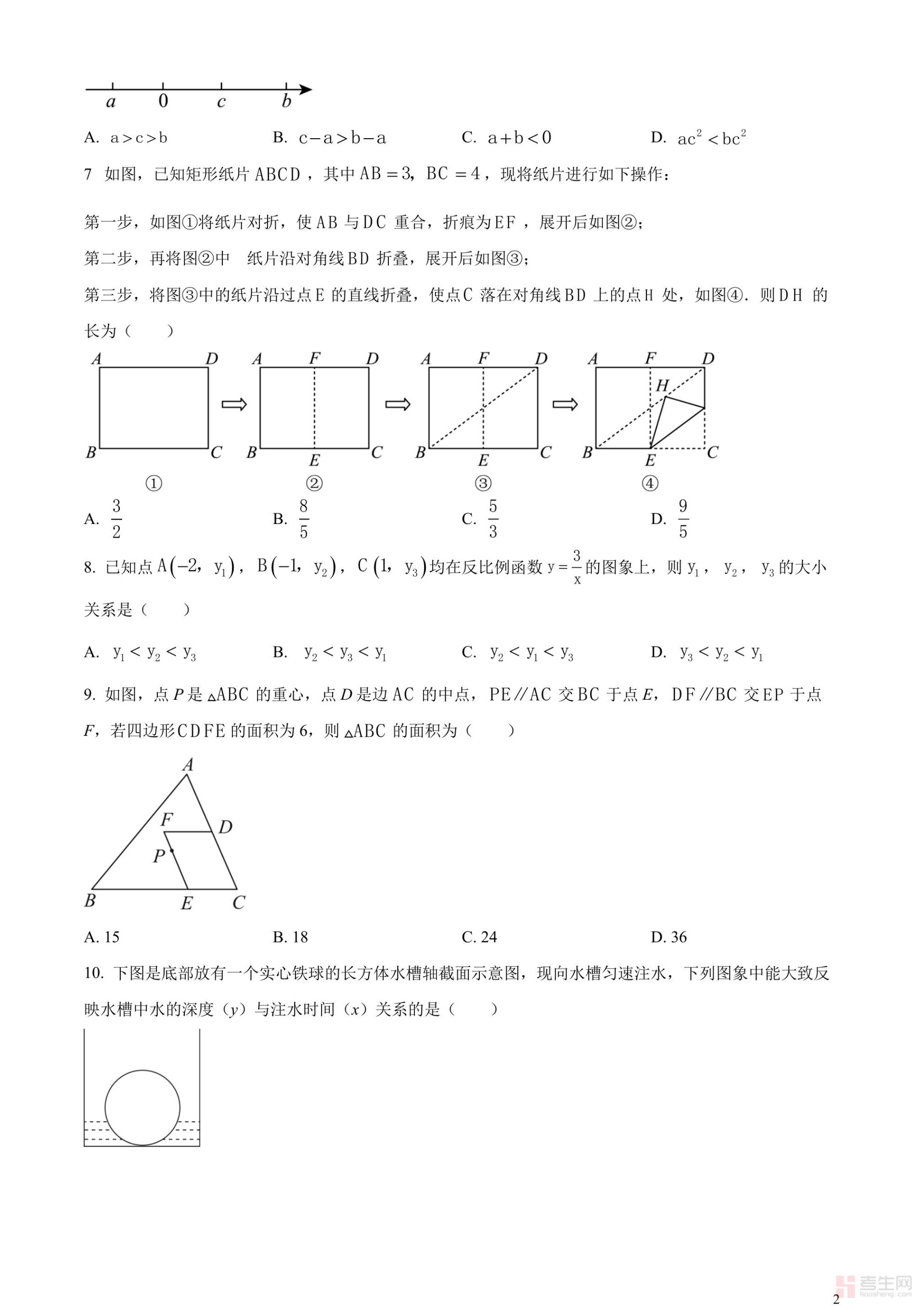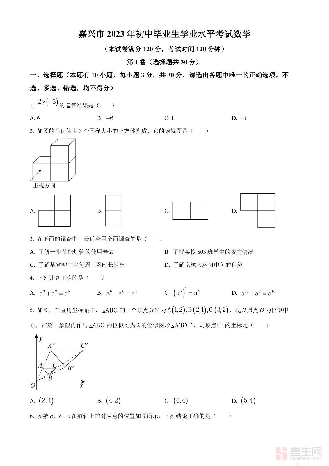 2023年浙江省嘉兴市中考数学真题(原卷版)