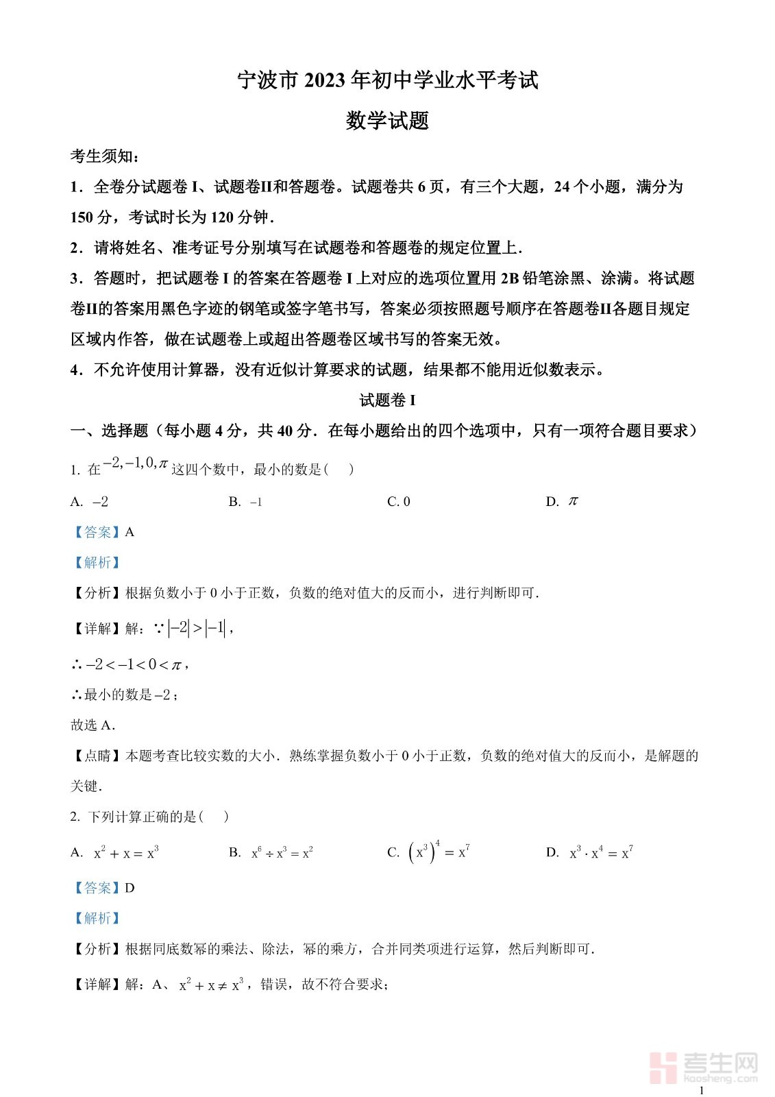 2023年辽宁省沈阳市中考数学真题(解析版)