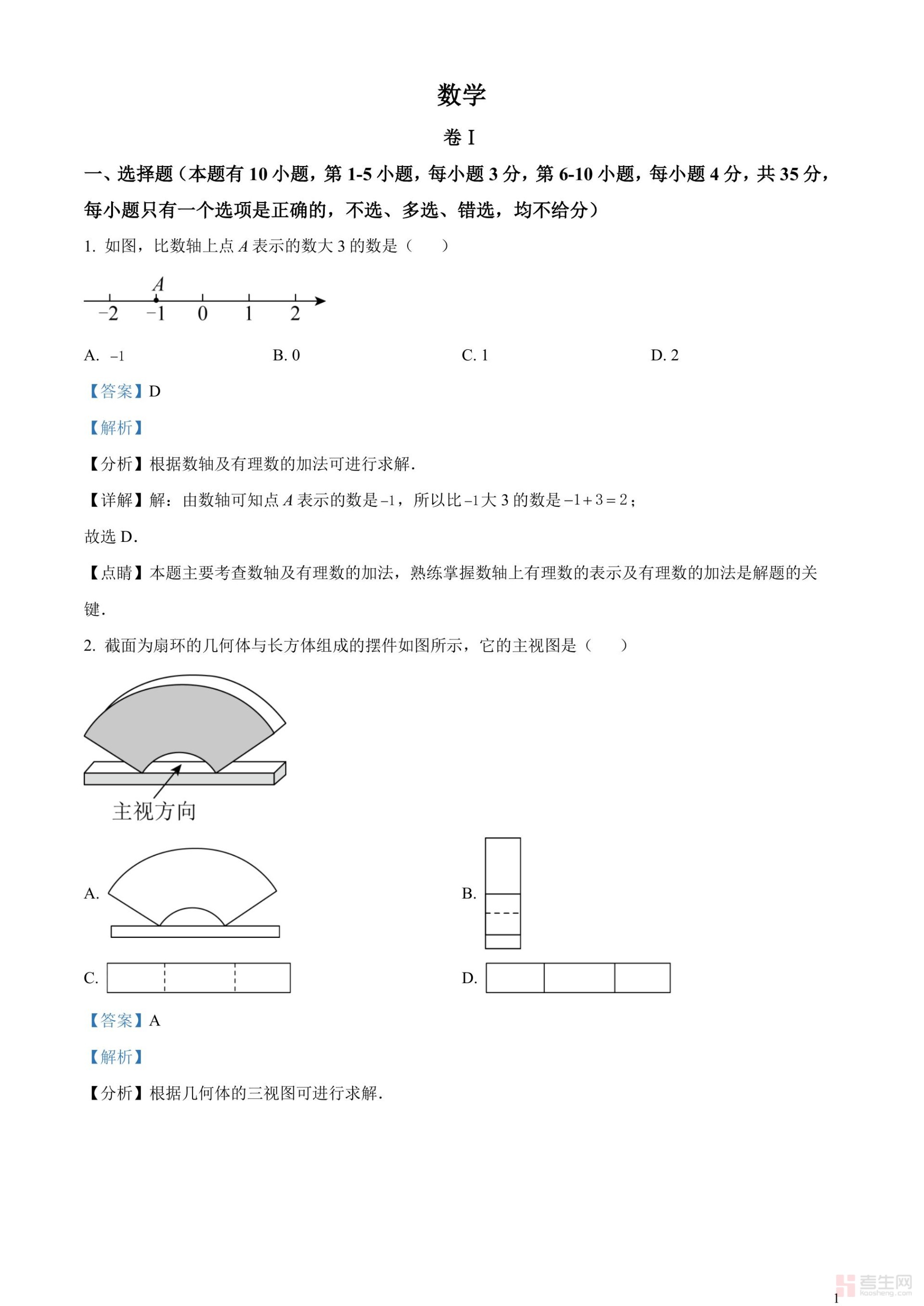 2023年辽宁省沈阳市中考数学真题(解析版)