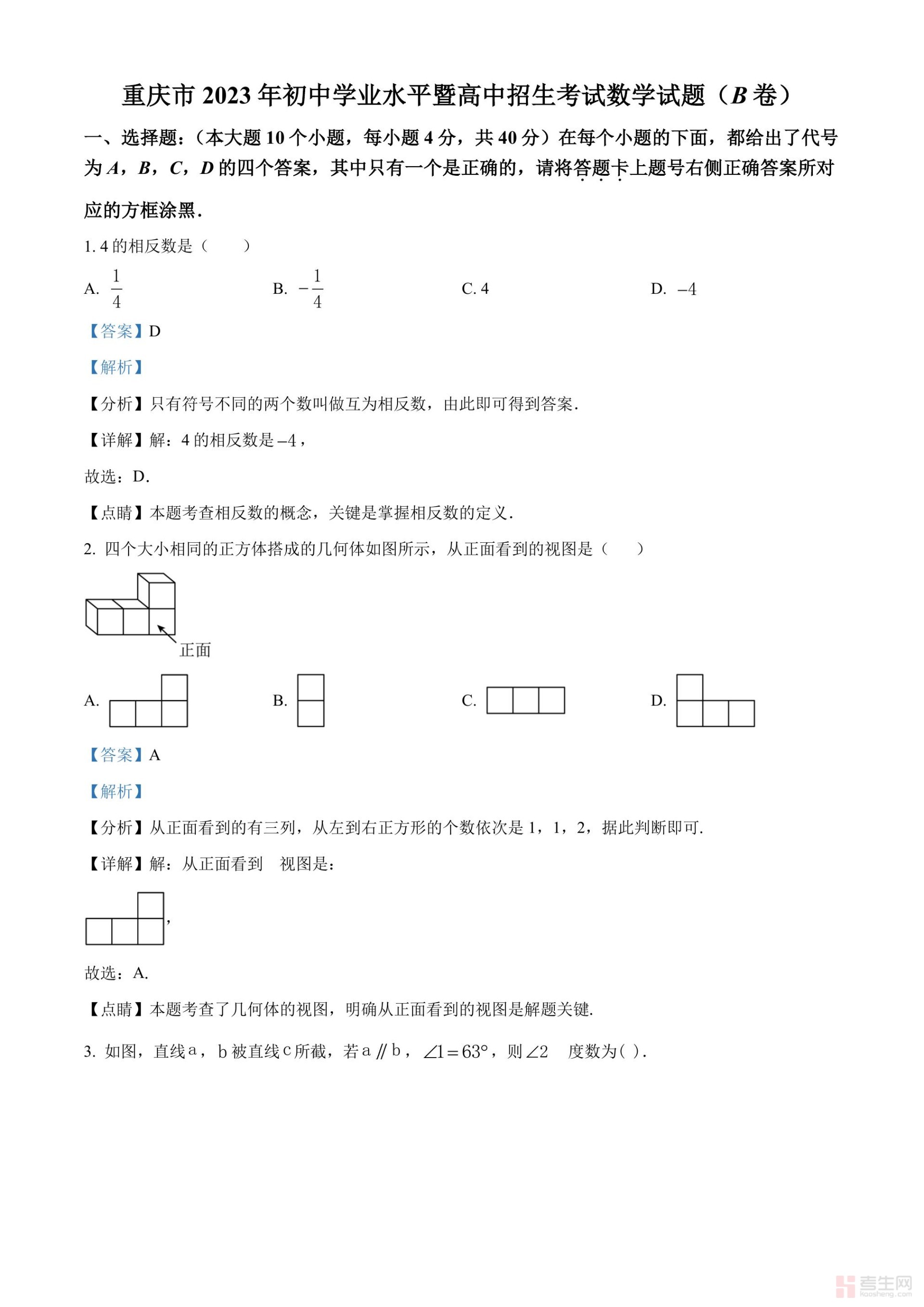 2023年辽宁省沈阳市中考数学真题(解析版)