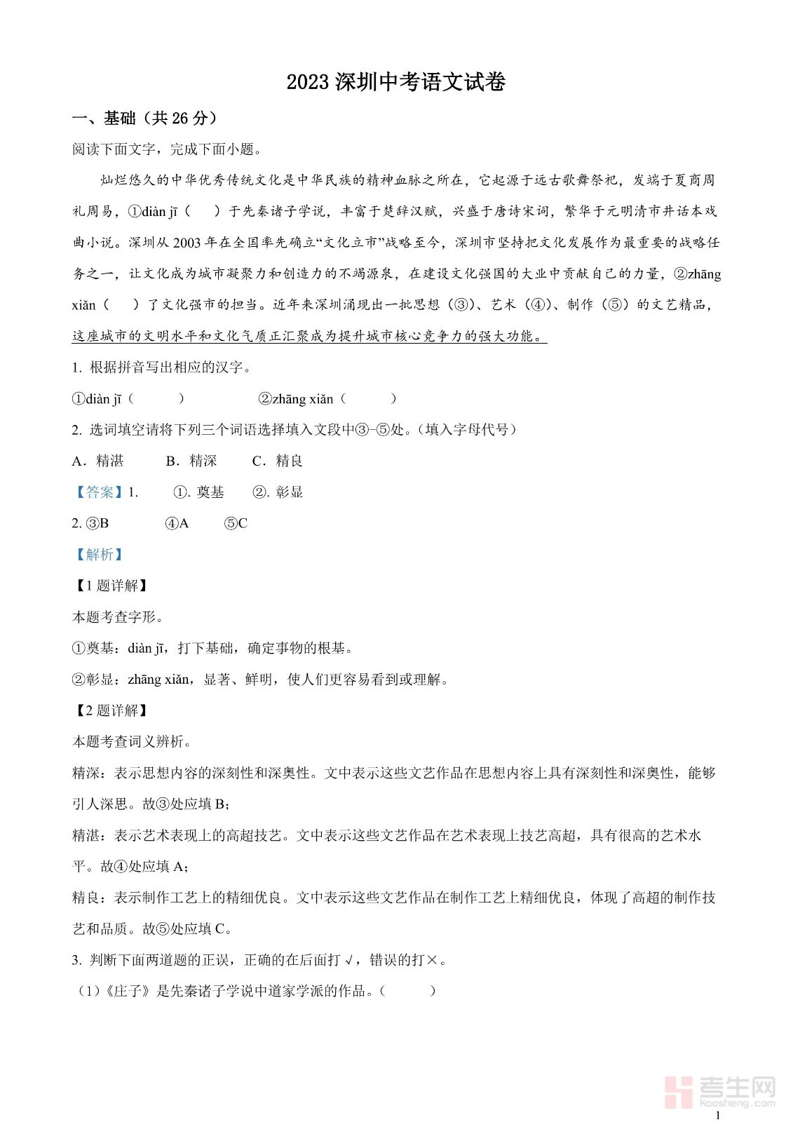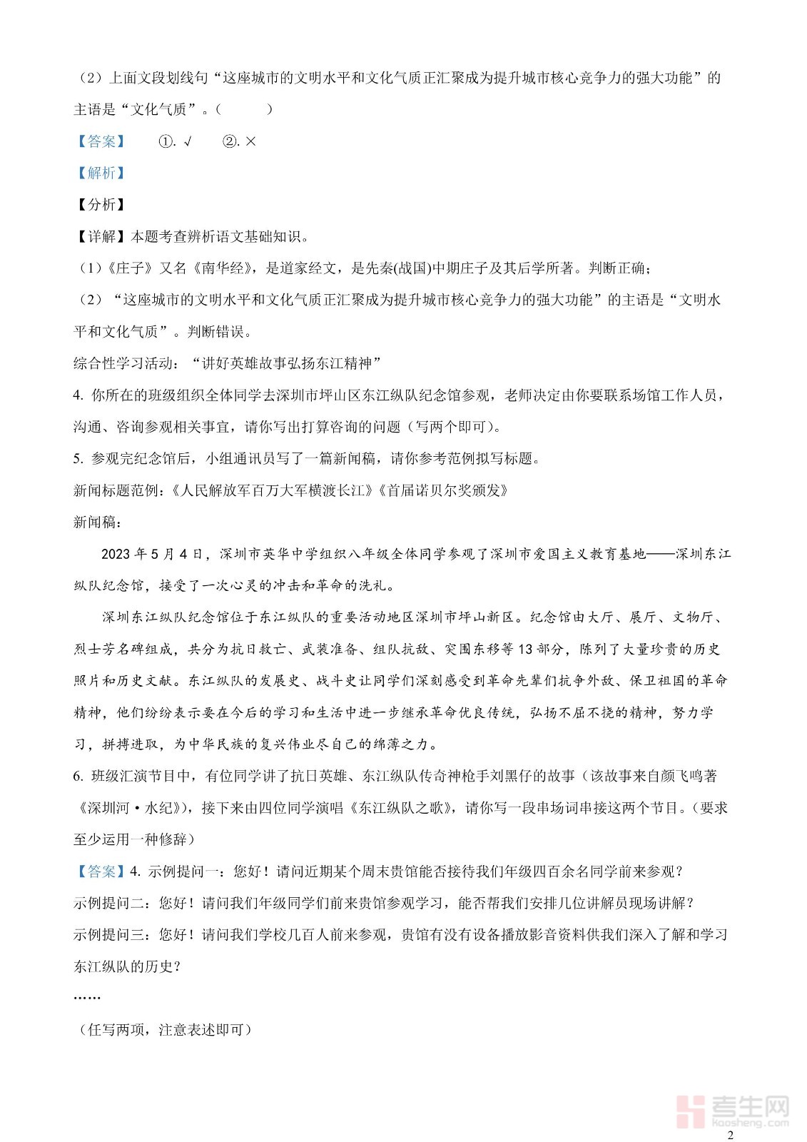 2023年广东省深圳市中考语文真题(解析版)