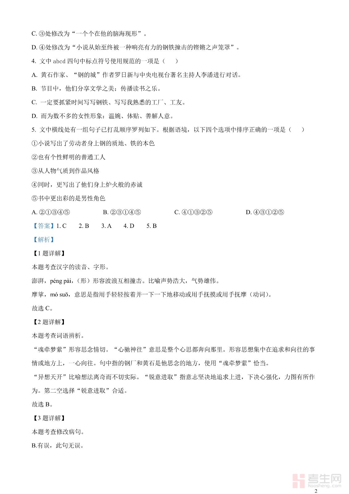 2023年湖北省黄石市中考语文真题(解析版)