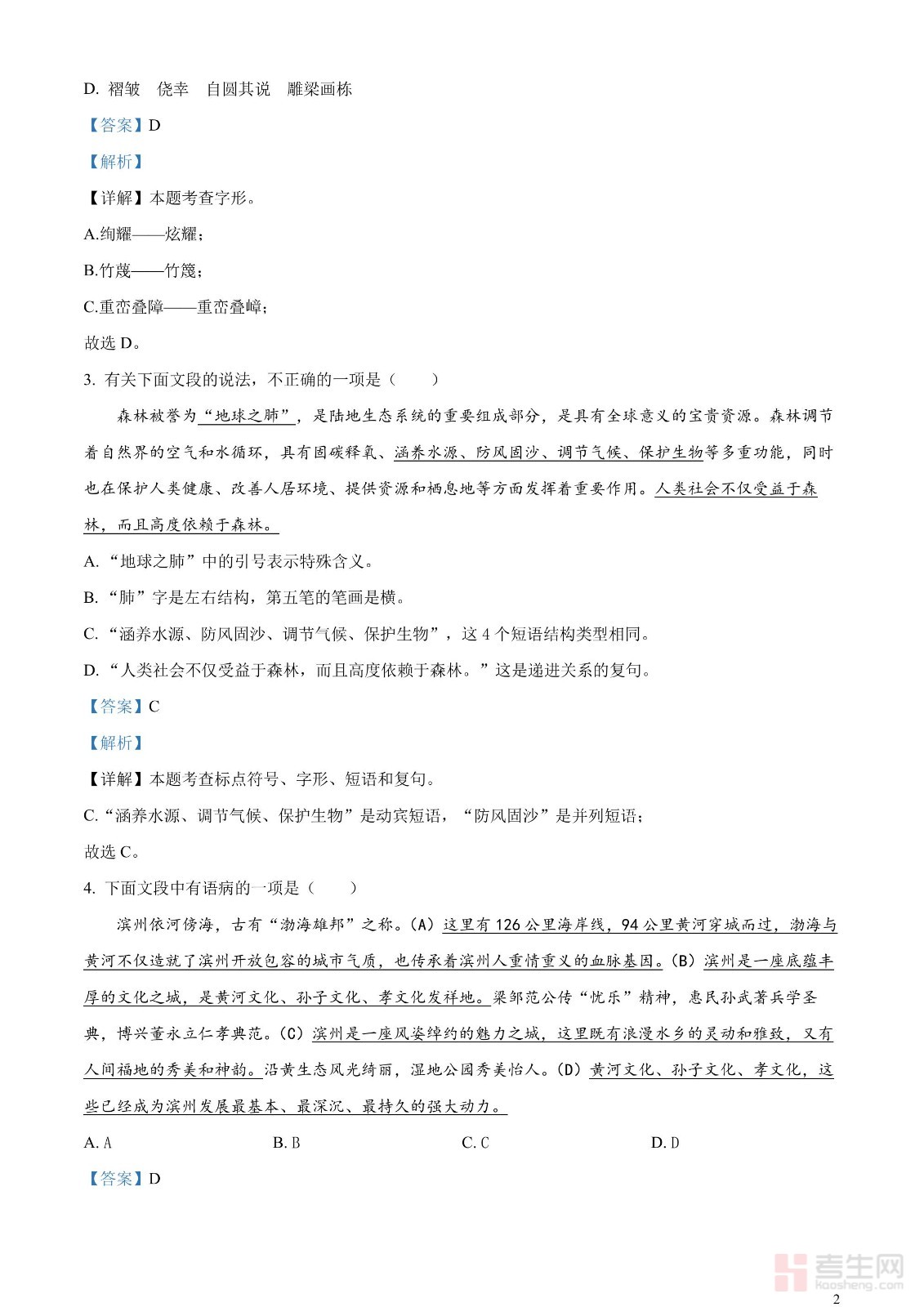 2023年山东省滨州市中考语文真题(解析版)