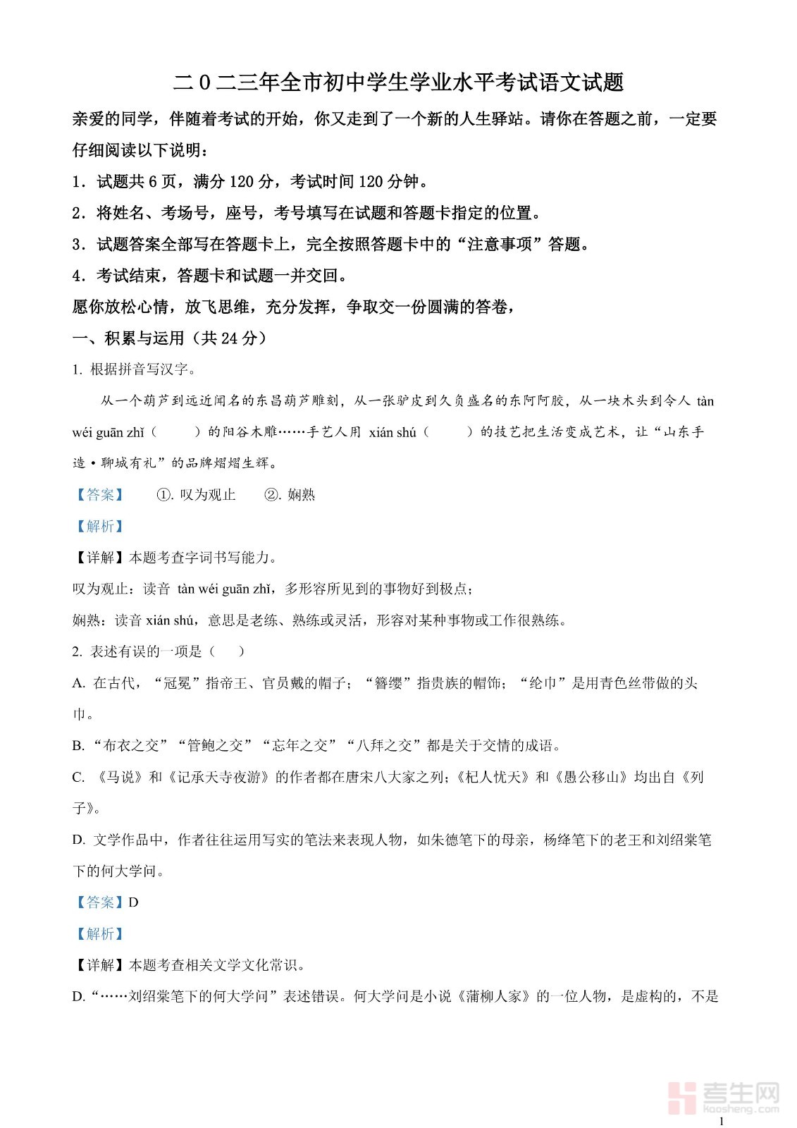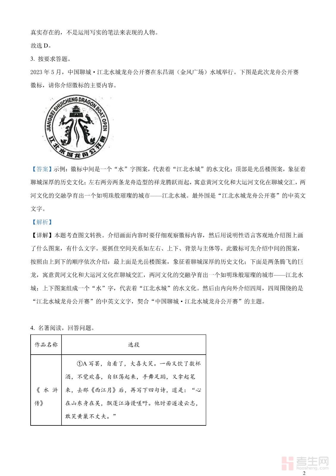 2023年山东省聊城市中考语文真题(解析版)